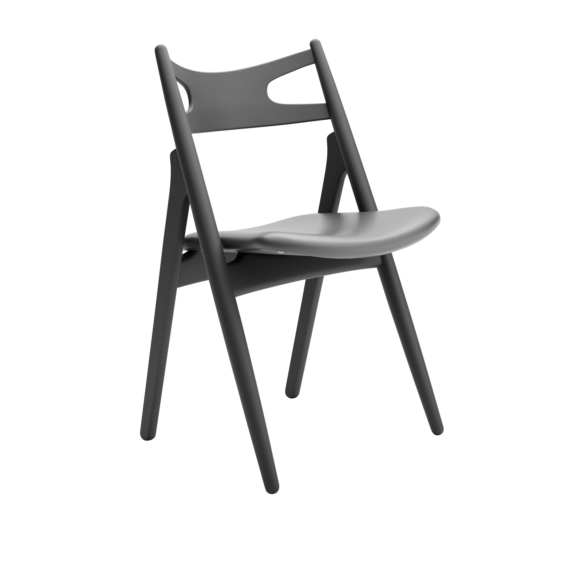 Carl Hansen - CH29P Sawbuck Chair, Lackerad Bok, Black, Lädergrupp B Thor - 359 - Matstolar - Hans J. Wegner - Svart - Läder/Trä