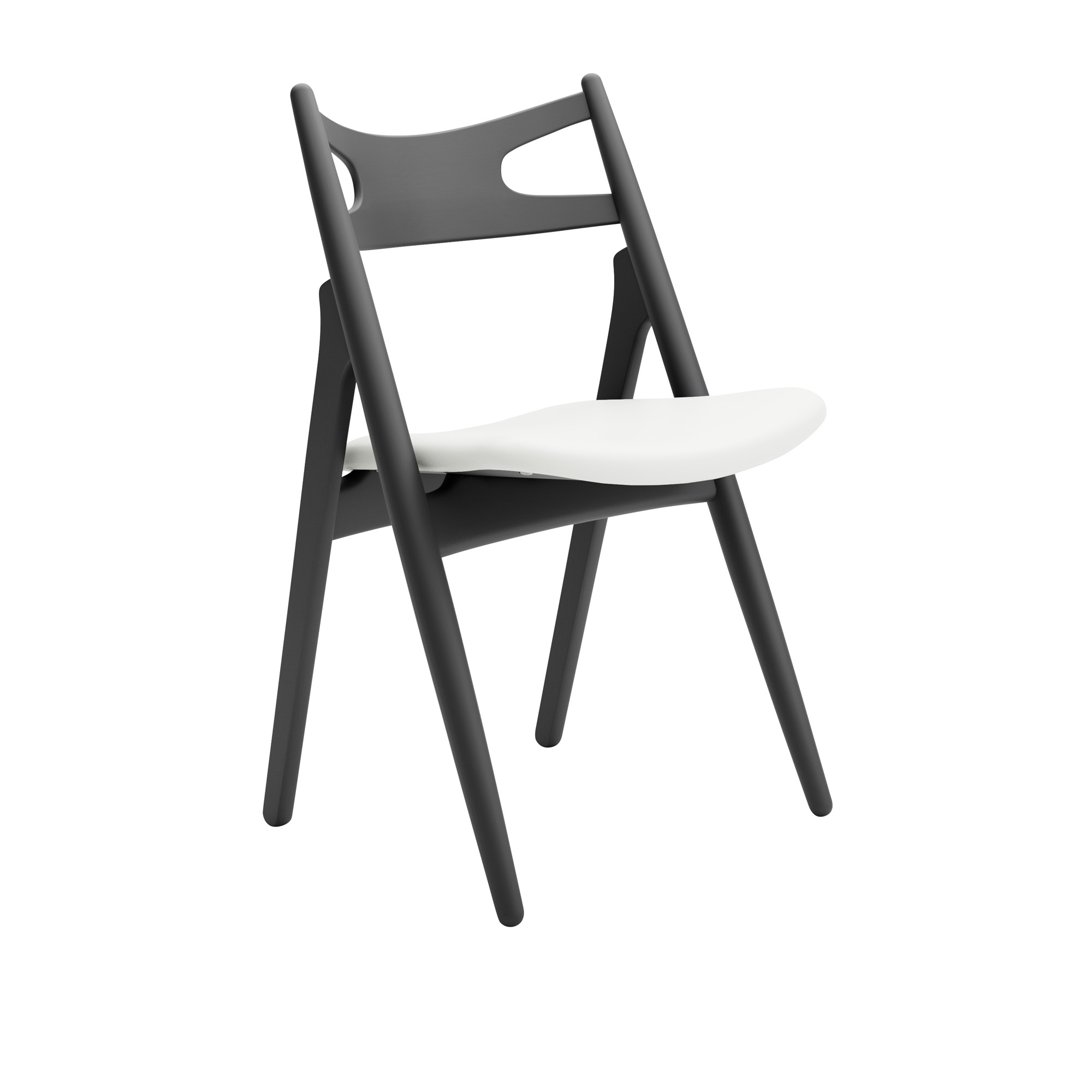 Carl Hansen - CH29P Sawbuck Chair, Lackerad Bok, Black, Lädergrupp B Thor - 390 - Matstolar - Hans J. Wegner - Svart - Läder/Trä
