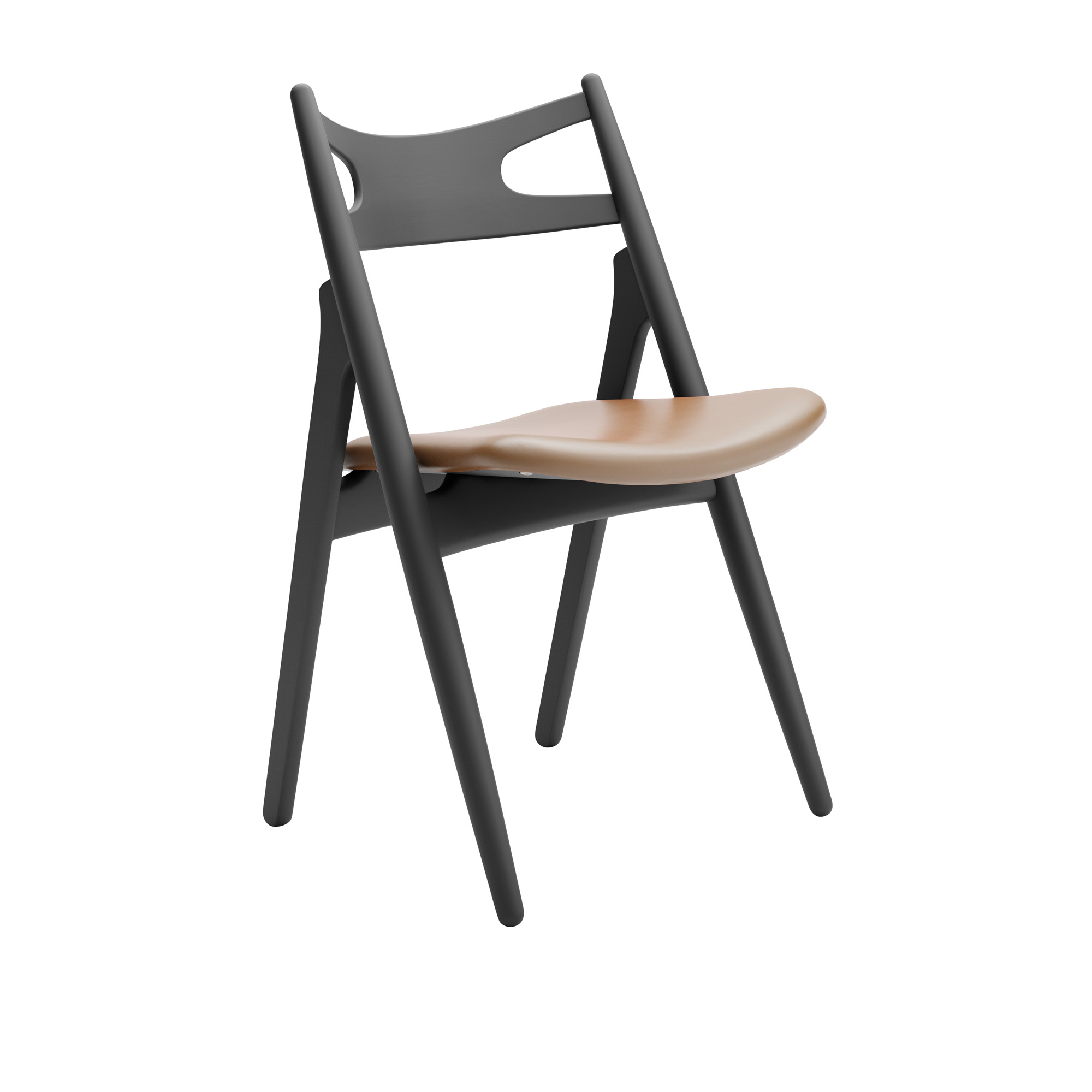 Carl Hansen - CH29P Sawbuck Chair, Lackerad Bok, Black, Lädergrupp C Sif - 91 - Matstolar - Hans J. Wegner - Svart - Läder/Trä