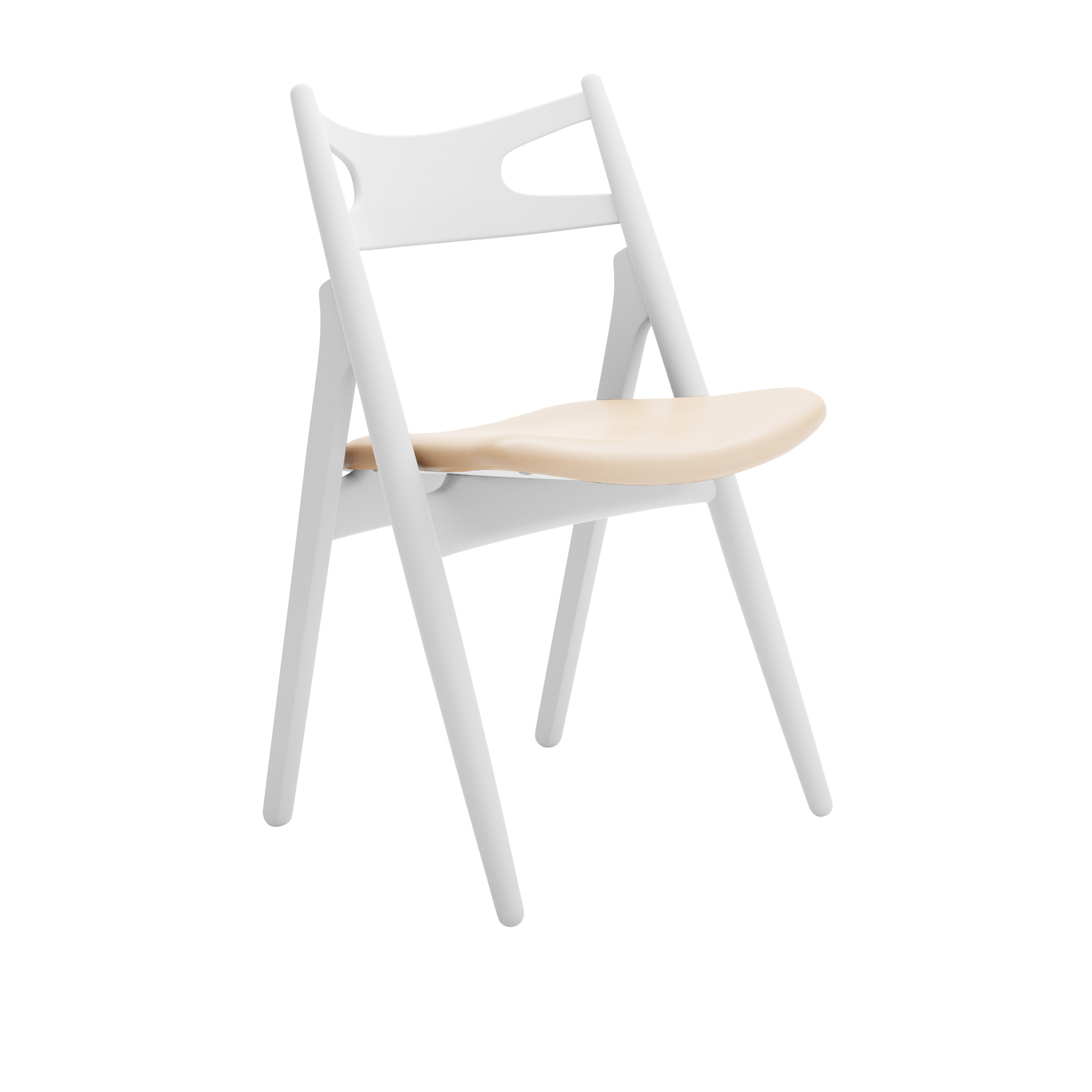 Carl Hansen - CH29P Sawbuck Chair, Lackerad Bok, Natural White, Lädergrupp C Sif - 90 - Matstolar - Hans J. Wegner - Vit - Läder/Trä