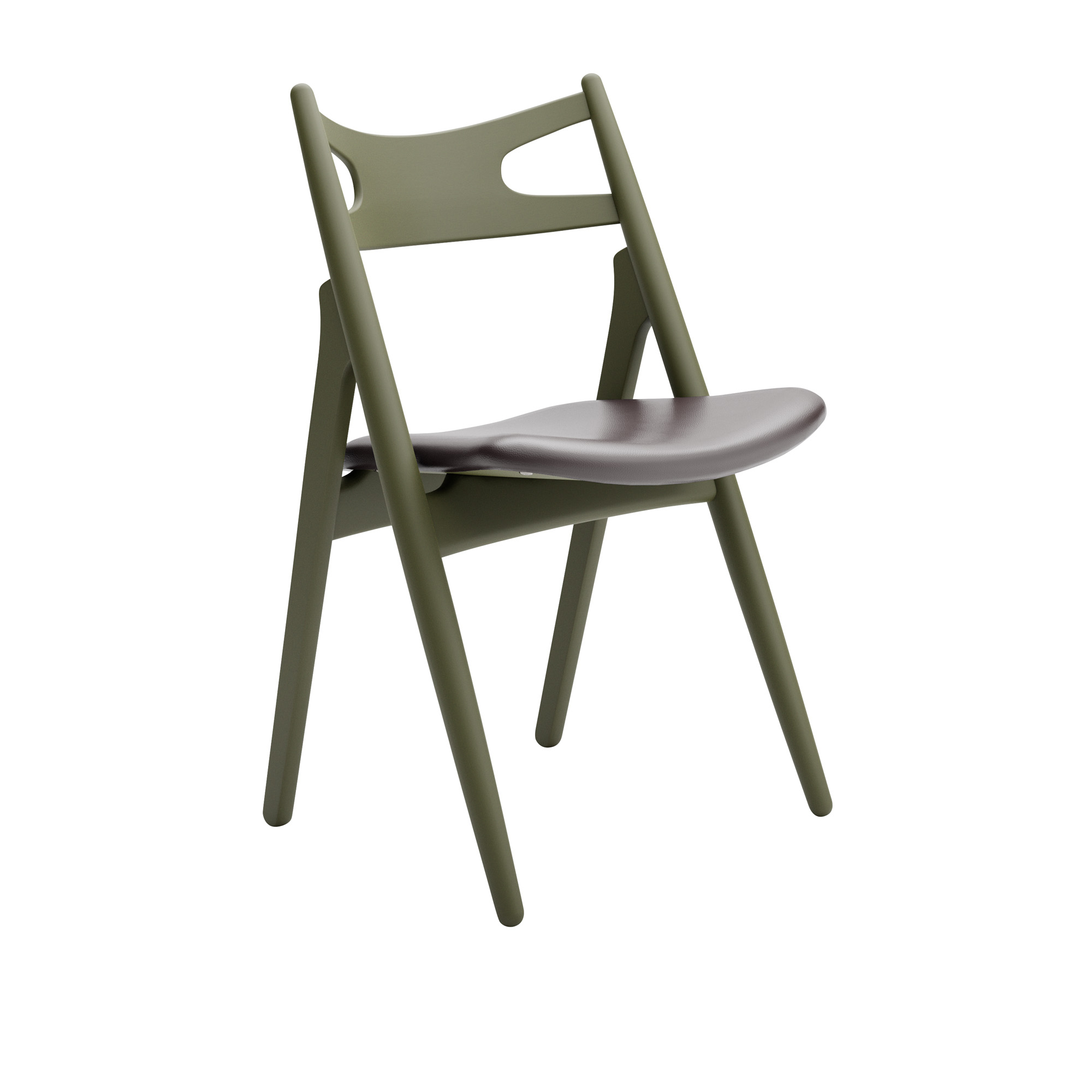 Carl Hansen - CH29P Sawbuck Chair, Lackerad Bok, Olive Green, Lädergrupp B Thor - 306 - Matstolar - Hans J. Wegner - Grön - Läder/Trä