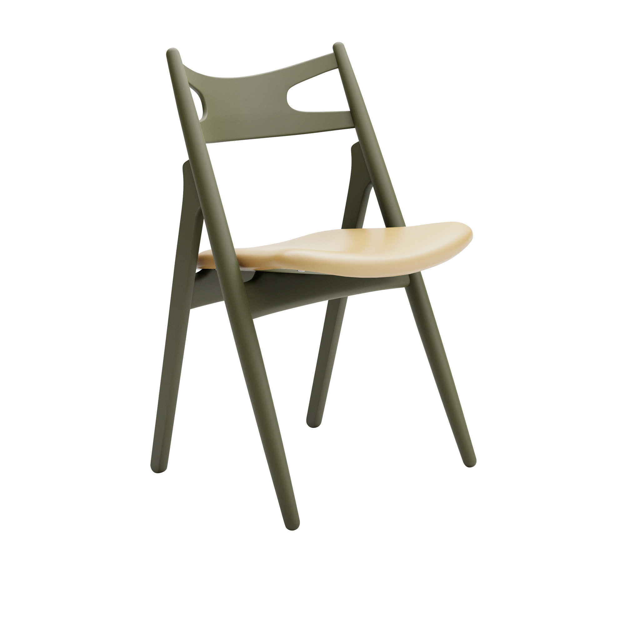 Carl Hansen - CH29P Sawbuck Chair, Lackerad Bok, Olive Green, Lädergrupp B Thor - 325 - Matstolar - Hans J. Wegner - Grön - Läder/Trä