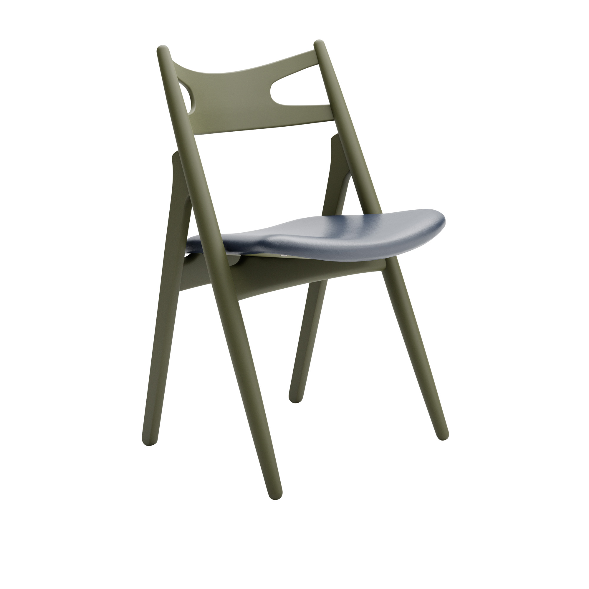Carl Hansen - CH29P Sawbuck Chair, Lackerad Bok, Olive Green, Lädergrupp B Thor - 350 - Matstolar - Hans J. Wegner - Grön - Läder/Trä