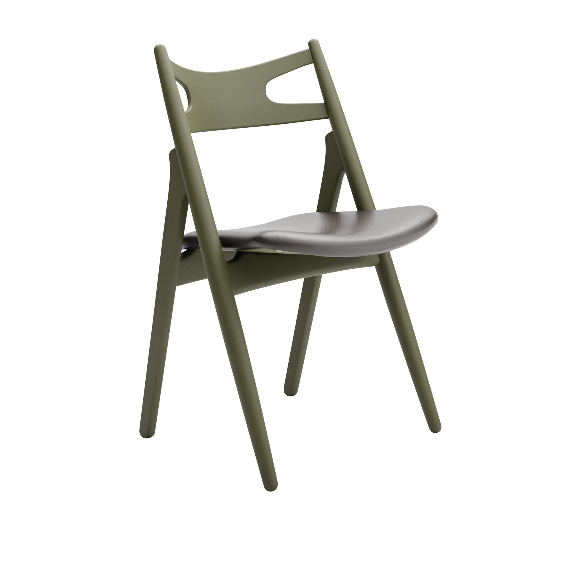 Carl Hansen - CH29P Sawbuck Chair, Lackerad Bok, Olive Green, Lädergrupp B Thor - 377 - Matstolar - Hans J. Wegner - Grön - Läder/Trä