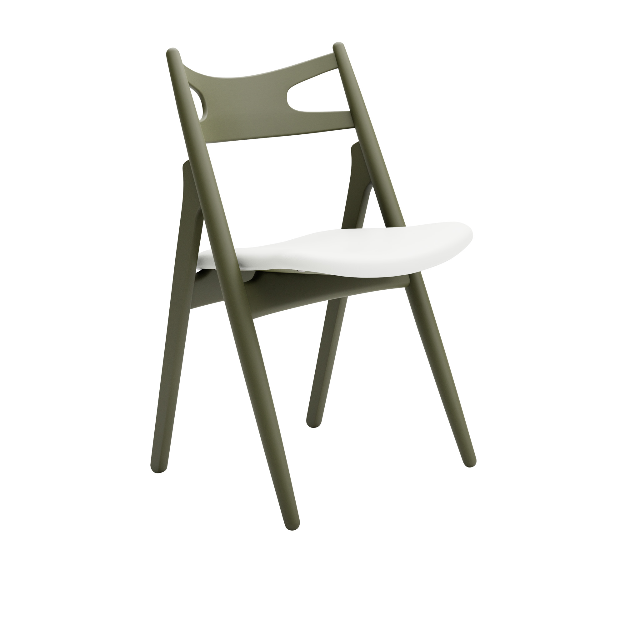Carl Hansen - CH29P Sawbuck Chair, Lackerad Bok, Olive Green, Lädergrupp B Thor - 390 - Matstolar - Hans J. Wegner - Grön - Läder/Trä