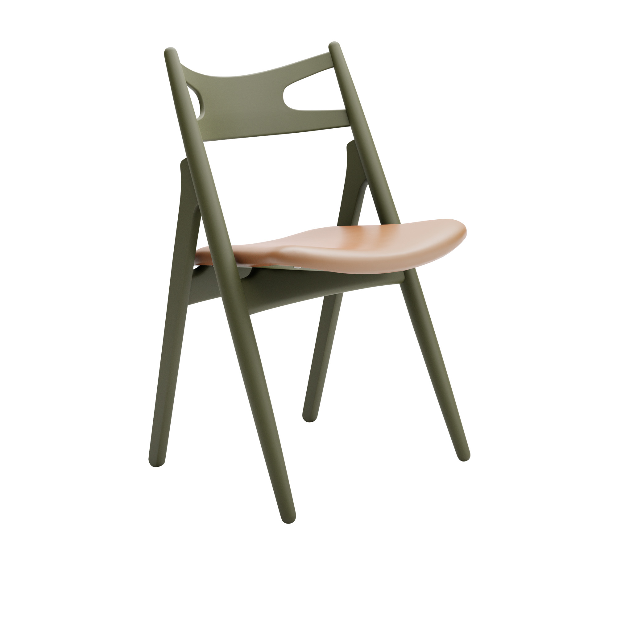 Carl Hansen - CH29P Sawbuck Chair, Lackerad Bok, Olive Green, Lädergrupp C Sif - 95 - Matstolar - Hans J. Wegner - Grön - Läder/Trä