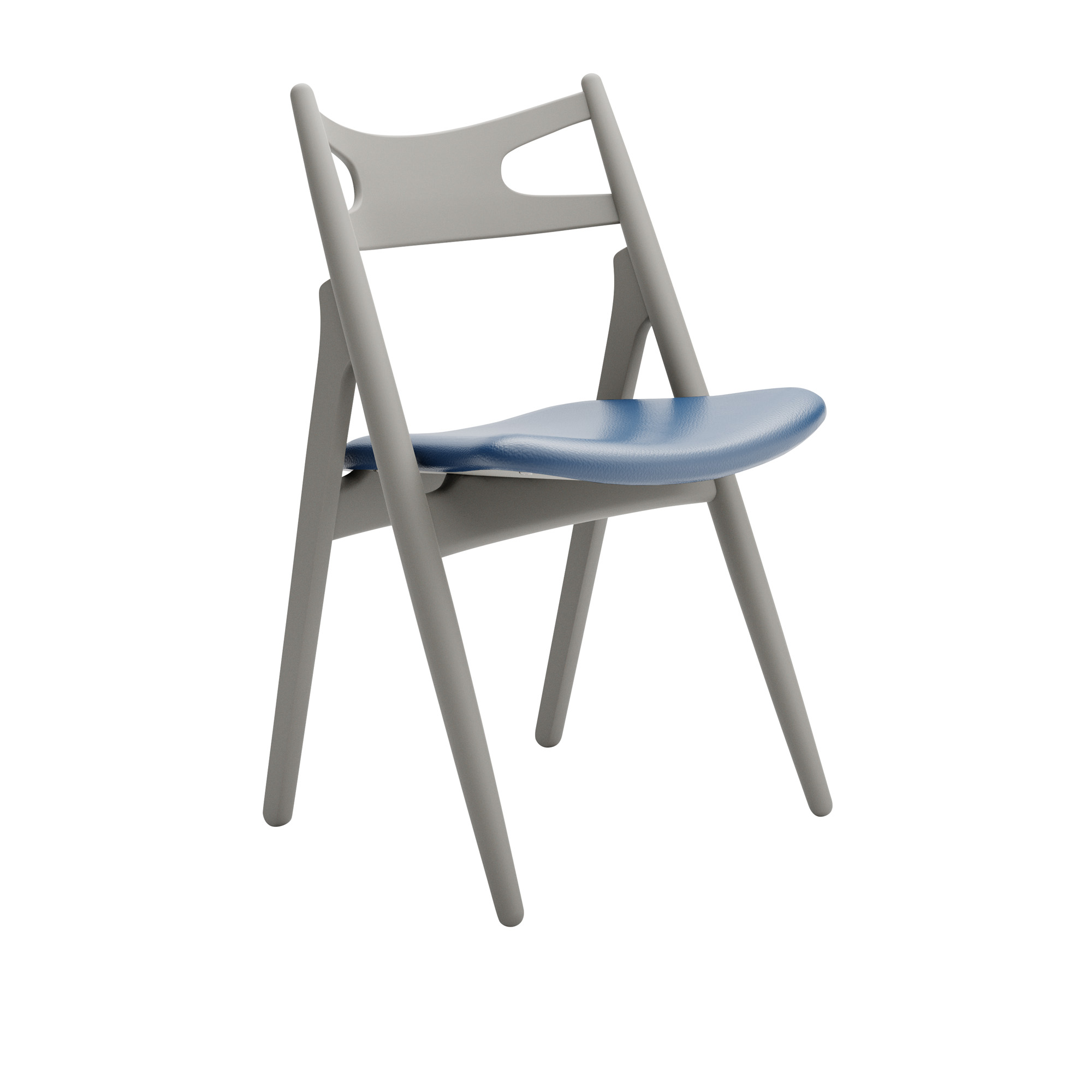 Carl Hansen - CH29P Sawbuck Chair, Lackerad Bok, Silver Grey, Lädergrupp A Loke - 7310 - Matstolar - Hans J. Wegner - Grå - Läder/Trä