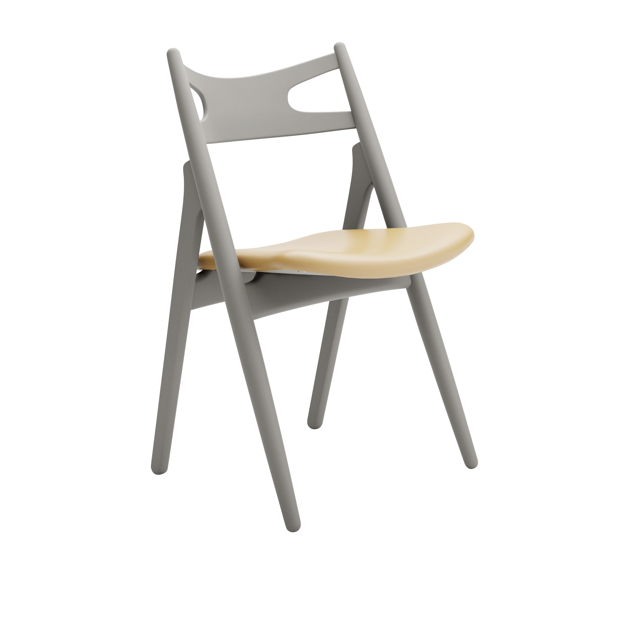 Carl Hansen - CH29P Sawbuck Chair, Lackerad Bok, Silver Grey, Lädergrupp B Thor - 325 - Matstolar - Hans J. Wegner - Grå - Läder/Trä