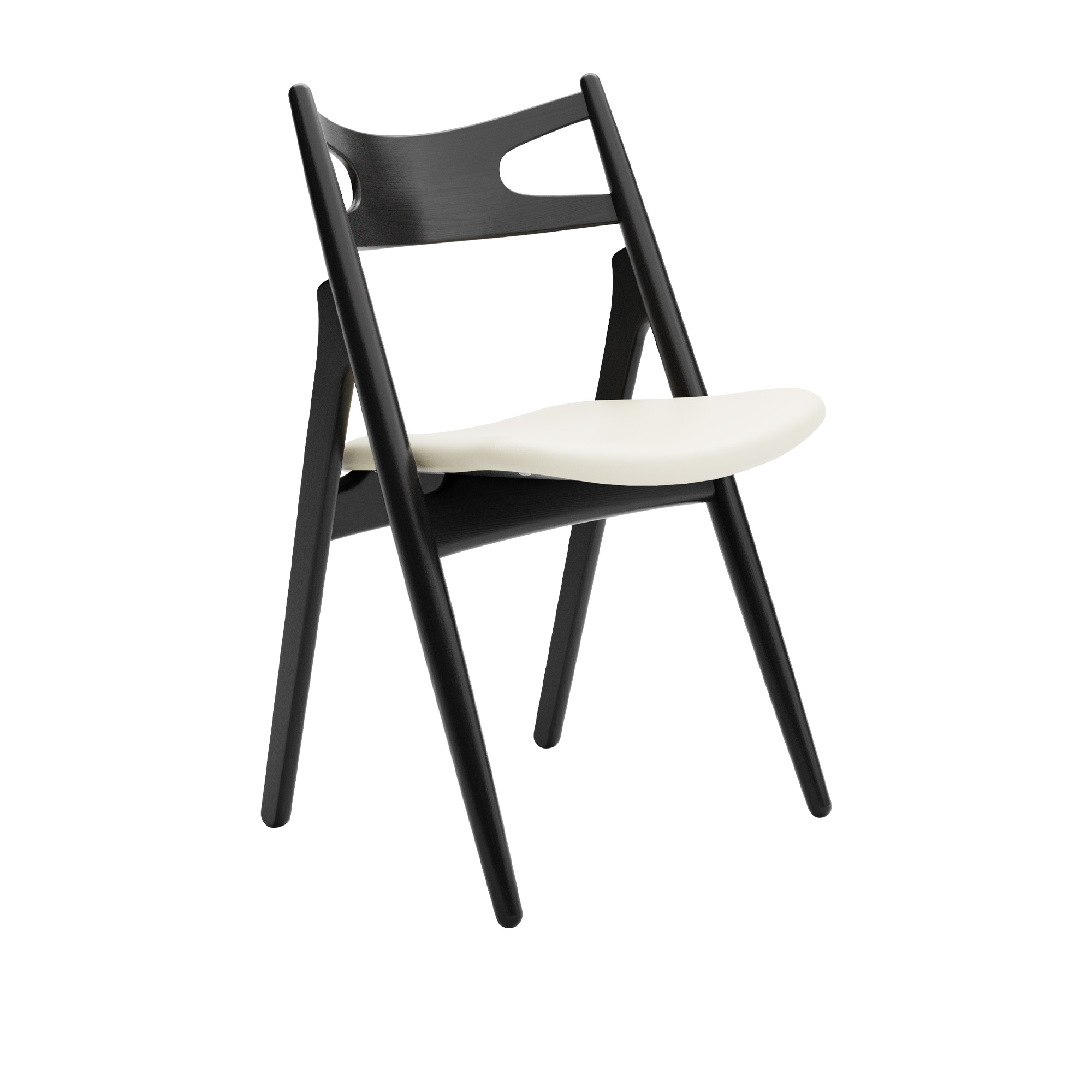 Carl Hansen - CH29P Sawbuck Chair, Svartlackad Ek, Lädergrupp B Thor - 300 - Matstolar - Hans J. Wegner - Svart - Läder/Trä