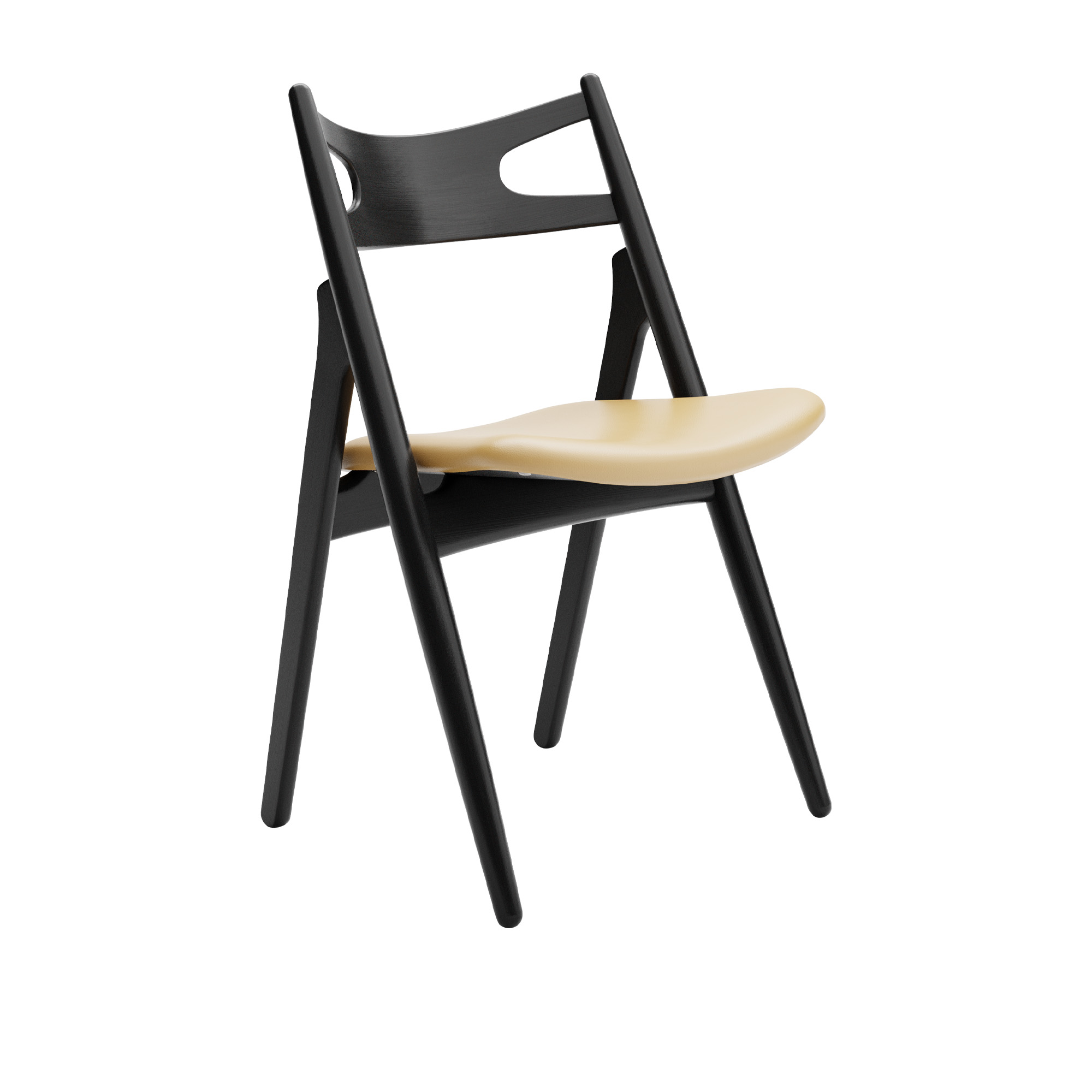 Carl Hansen - CH29P Sawbuck Chair, Tvålad Bok, Lädergrupp A Loke - 7150 - Matstolar - Hans J. Wegner - Träfärgad - Läder/Trä
