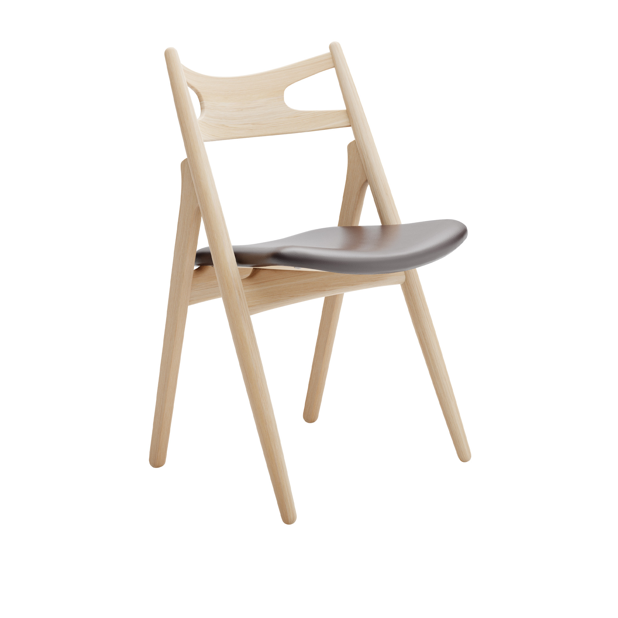 Carl Hansen - CH29P Sawbuck Chair, Vitoljad Ek, Lädergrupp B Thor - 306 - Matstolar - Hans J. Wegner - Träfärgad - Läder/Trä