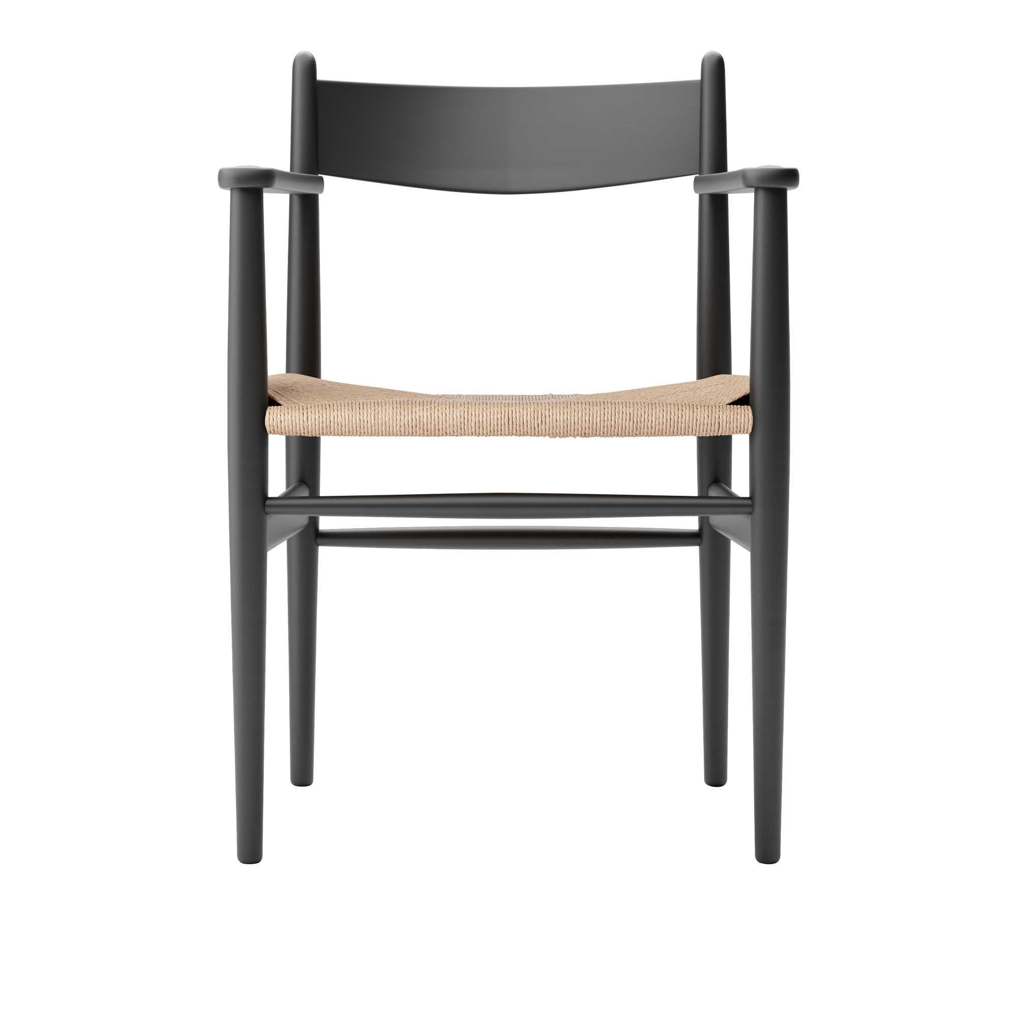Carl Hansen - CH37, Lackerad Bok, Black, Naturflätat papperssnöre - Matstolar - Hans J. Wegner - Svart - Trä