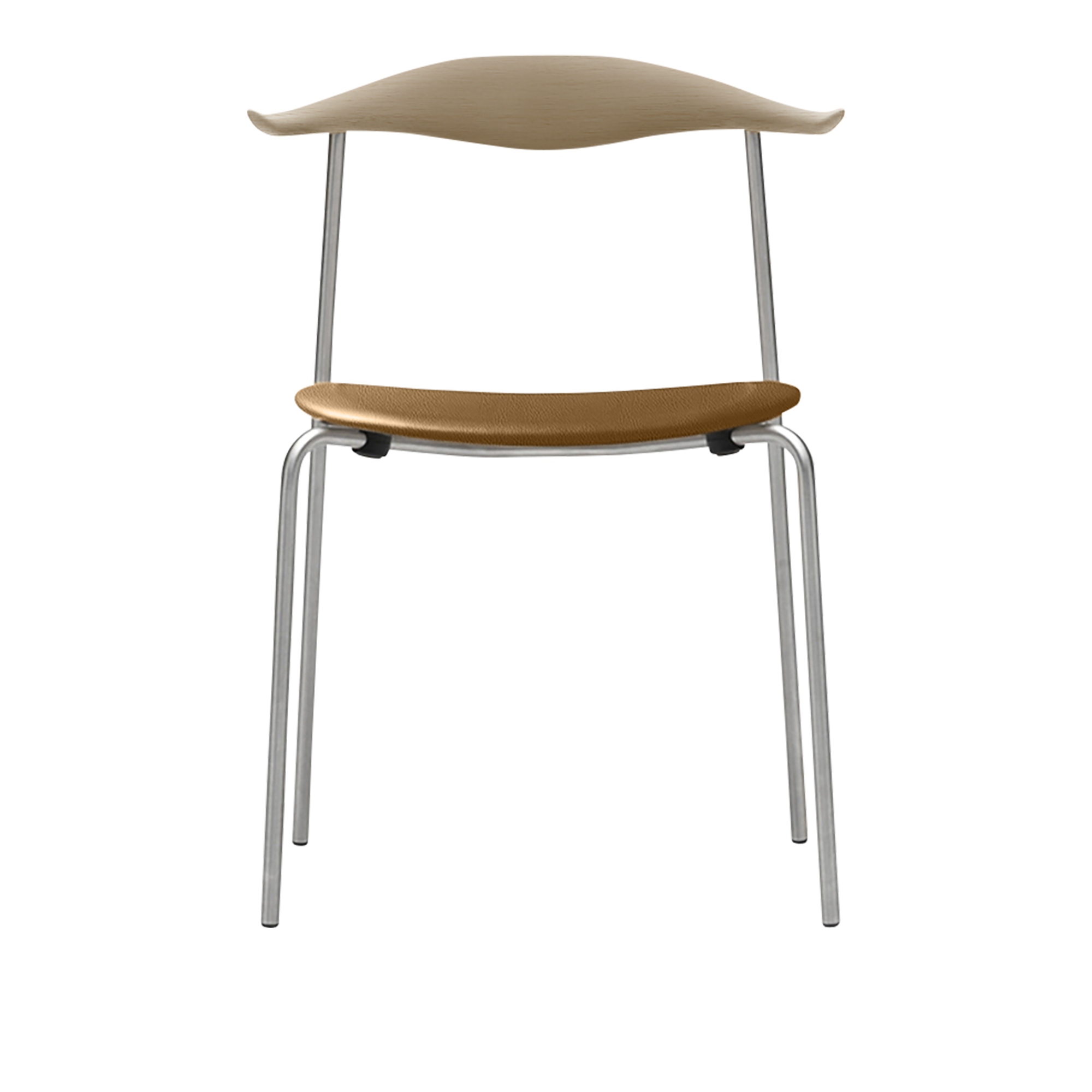 Carl Hansen - CH88P - Klädd sits, Tvålad Ek, Lädergrupp A Loke - 7050, Ben i Rostfritt stål - Matstolar - Hans J. Wegner - Brun - Metall/Trä