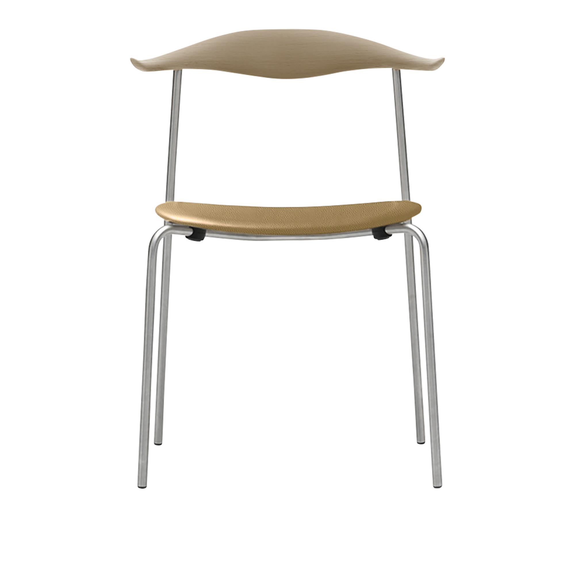 Carl Hansen - CH88P - Klädd sits, Tvålad Ek, Lädergrupp B Thor - 325, Ben i Rostfritt stål - Matstolar - Hans J. Wegner - Beige - Metall/Trä