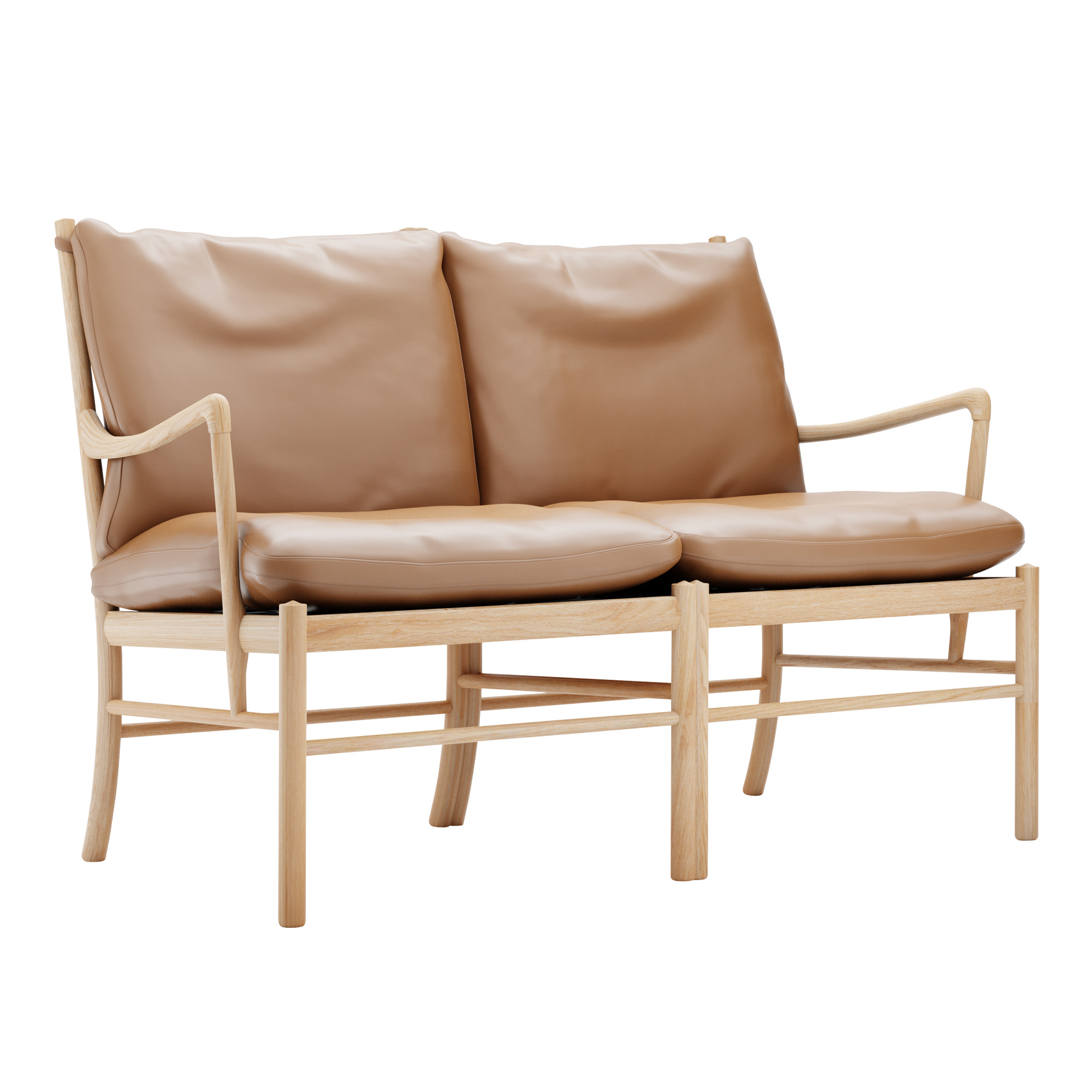 Denna OW149-2 Colonial Sofa presenteras med en stomme i massivt ekträ, som du kan anpassa med en finish i olja, såpa eller vitolja. Denna bas kombinerar du med löstagbara dynor i läder. Finns i ett urval av läderklädsel i många olika nyanser.