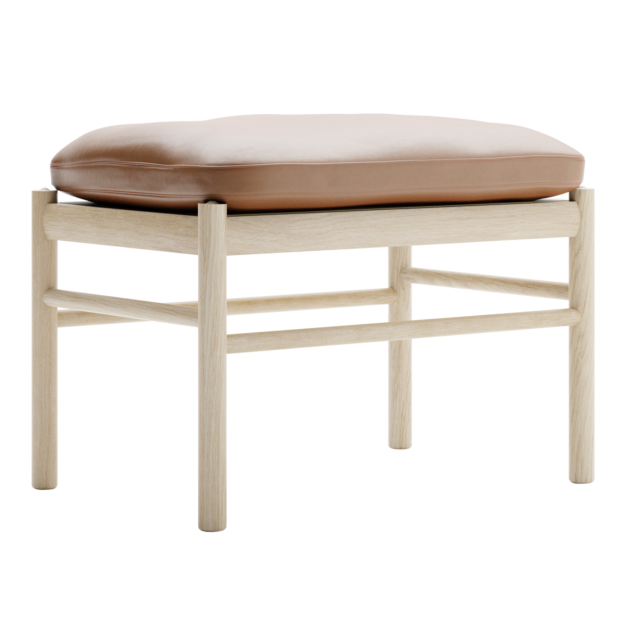 Carl Hansen - OW149F - Colonial Footstool, Tvålad Ek, Lädergrupp C Sif - 95 - Fotpallar - Ole Wanscher - Brun - Läder/Trä