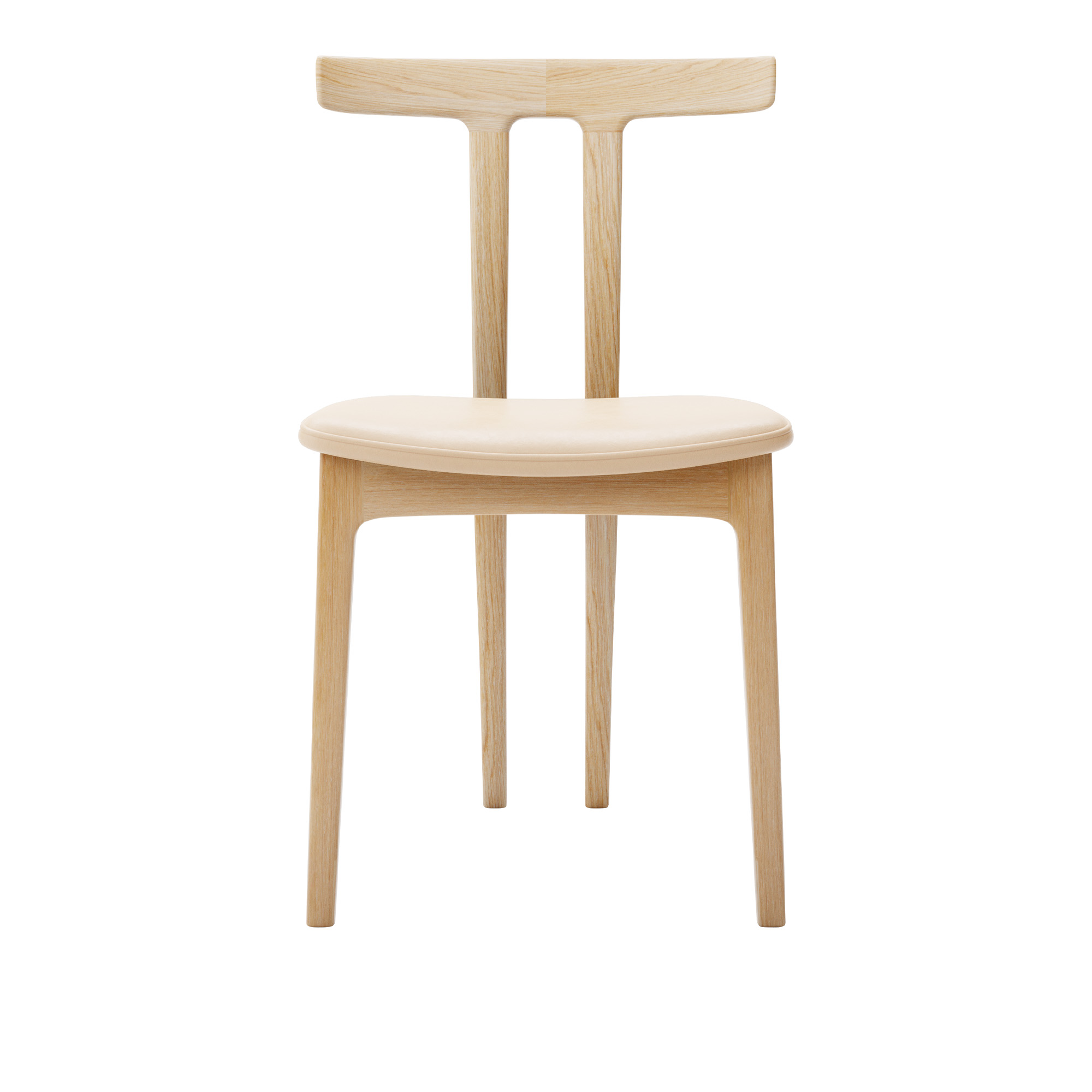 Matstolen OW58 T-Chair i ekträ är en skapelse av designern Ole Wanscher för det anrika danska företaget Carl Hansen & Søn. Denna nylanserade version är en ode till Wanschers original från 1958, med den enda förändringen att stolen har försetts med en högre profil för att förbättra sittkomforten. OW58 T-Chair är ett verk som speglar en djupgående vördnad för yrkesskicklighet, materialval och praktisk användning, och är tillverkad av solid ek med möjlighet att välja mellan olika ytfinishar. Stolens säte är stoppat med kallskum och överdraget med läder, och modellen erbjuds även i valnötsträ. Dess distinkta T-formade ryggstöd är upphovet till dess öknamn. Med sin förening av traditionella och samtida drag framstår stolen som både stilren och graciös.