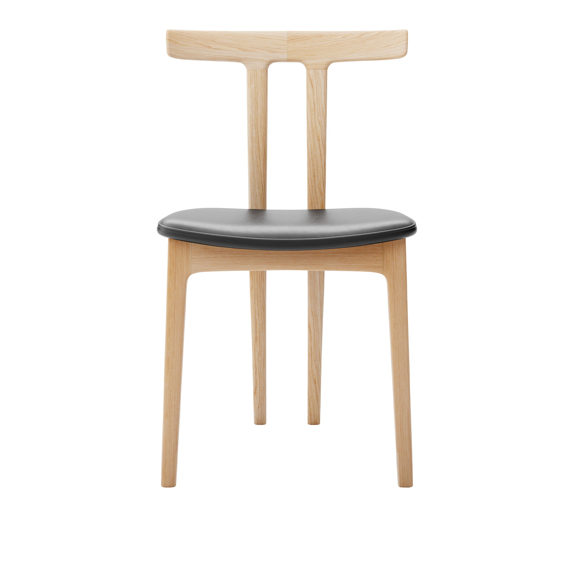 Matstolen OW58 T-Chair i ekträ är en skapelse av designern Ole Wanscher för det anrika danska företaget Carl Hansen & Søn. Denna nylanserade version är en ode till Wanschers original från 1958, med den enda förändringen att stolen har försetts med en högre profil för att förbättra sittkomforten. OW58 T-Chair är ett verk som speglar en djupgående vördnad för yrkesskicklighet, materialval och praktisk användning, och är tillverkad av solid ek med möjlighet att välja mellan olika ytfinishar. Stolens säte är stoppat med kallskum och överdraget med läder, och modellen erbjuds även i valnötsträ. Dess distinkta T-formade ryggstöd är upphovet till dess öknamn. Med sin förening av traditionella och samtida drag framstår stolen som både stilren och graciös.