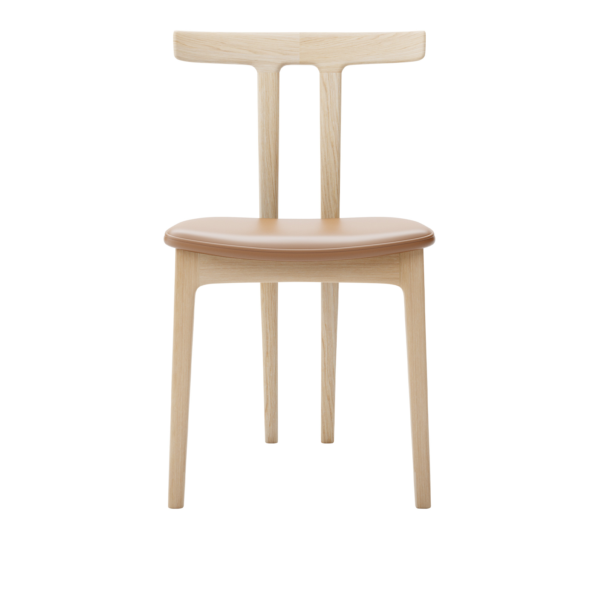 Matstolen OW58 T-Chair i ekträ är en skapelse av designern Ole Wanscher för det anrika danska företaget Carl Hansen & Søn. Denna nylanserade version är en ode till Wanschers original från 1958, med den enda förändringen att stolen har försetts med en högre profil för att förbättra sittkomforten. OW58 T-Chair är ett verk som speglar en djupgående vördnad för yrkesskicklighet, materialval och praktisk användning, och är tillverkad av solid ek med möjlighet att välja mellan olika ytfinishar. Stolens säte är stoppat med kallskum och överdraget med läder, och modellen erbjuds även i valnötsträ. Dess distinkta T-formade ryggstöd är upphovet till dess öknamn. Med sin förening av traditionella och samtida drag framstår stolen som både stilren och graciös.