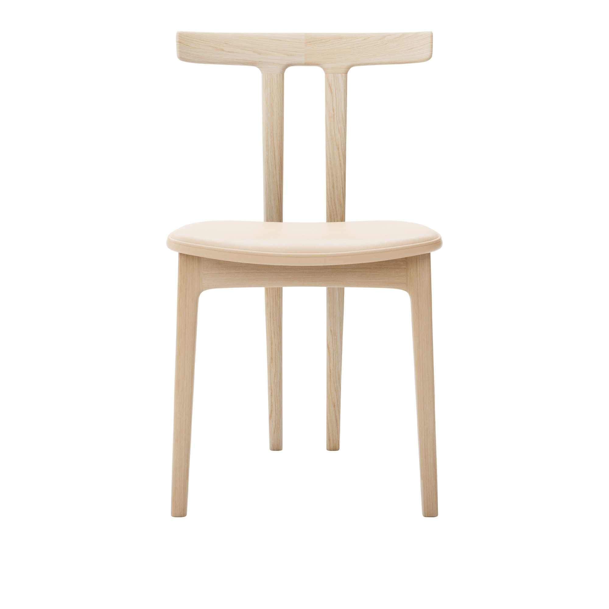 Matstolen OW58 T-Chair i ekträ är en skapelse av designern Ole Wanscher för det anrika danska företaget Carl Hansen & Søn. Denna nylanserade version är en ode till Wanschers original från 1958, med den enda förändringen att stolen har försetts med en högre profil för att förbättra sittkomforten. OW58 T-Chair är ett verk som speglar en djupgående vördnad för yrkesskicklighet, materialval och praktisk användning, och är tillverkad av solid ek med möjlighet att välja mellan olika ytfinishar. Stolens säte är stoppat med kallskum och överdraget med läder, och modellen erbjuds även i valnötsträ. Dess distinkta T-formade ryggstöd är upphovet till dess öknamn. Med sin förening av traditionella och samtida drag framstår stolen som både stilren och graciös.