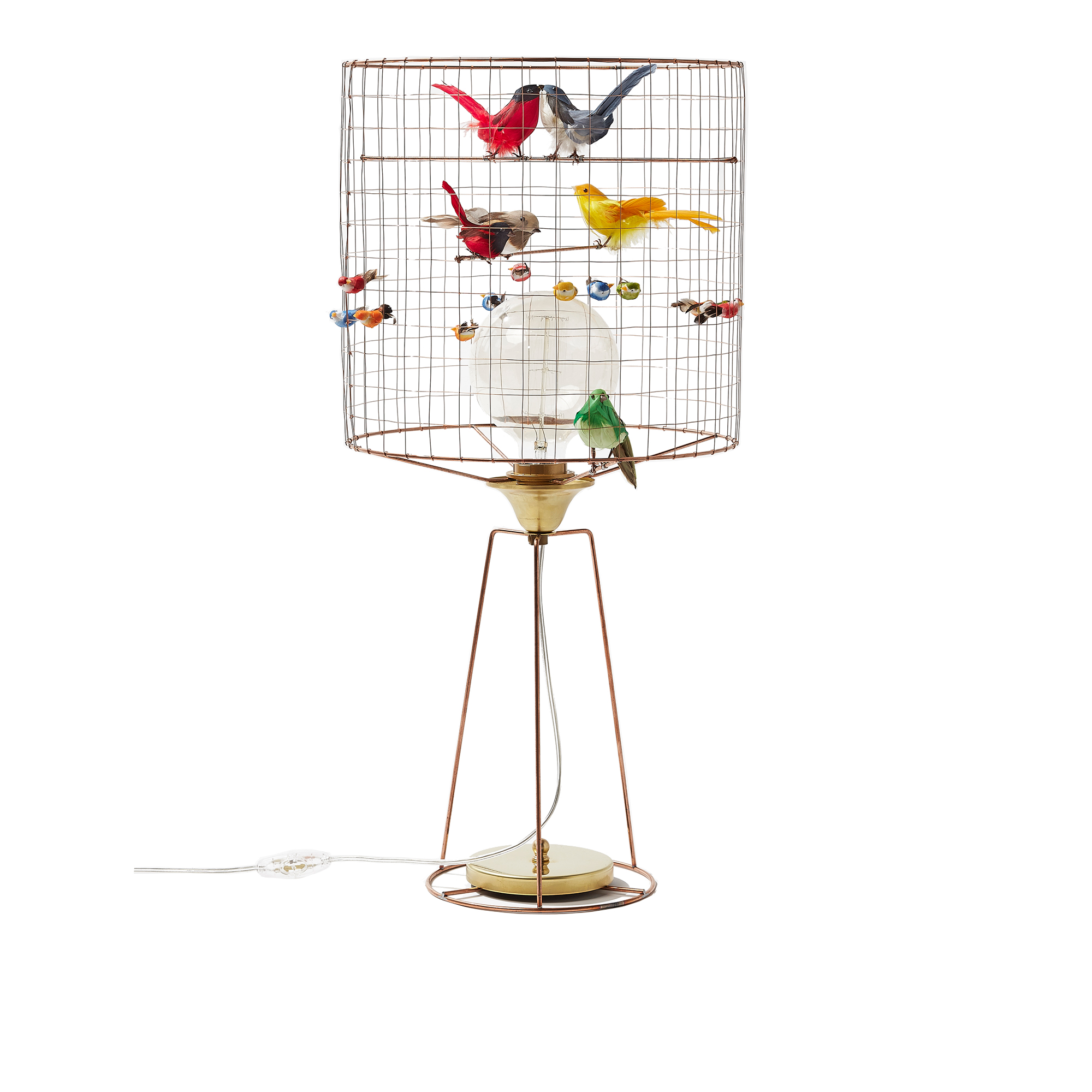 Lampe Volière Haute är en handgjord bordslampan från varumärket Challiéres. Produkten är designad av Mathieu Challières och består av konstnärliga fåglar i äkta fjädrar och en unik bur tillverkad av kopparpläterad metall. Varje fågel som ingår i verket är gjord av riktiga fjädrar, vilket ger varje fågel sitt eget unika utseende och känsla. När Fågellampa Lampe Volière Haute är tänd ger den ett varmt, inbjudande ljus som kan bidra till att skapa en behaglig atmosfär i vilket vardagsrum som helst. En unik bordslampa för alla designentusiaster som vill ha en speciell och estetisk interiör.