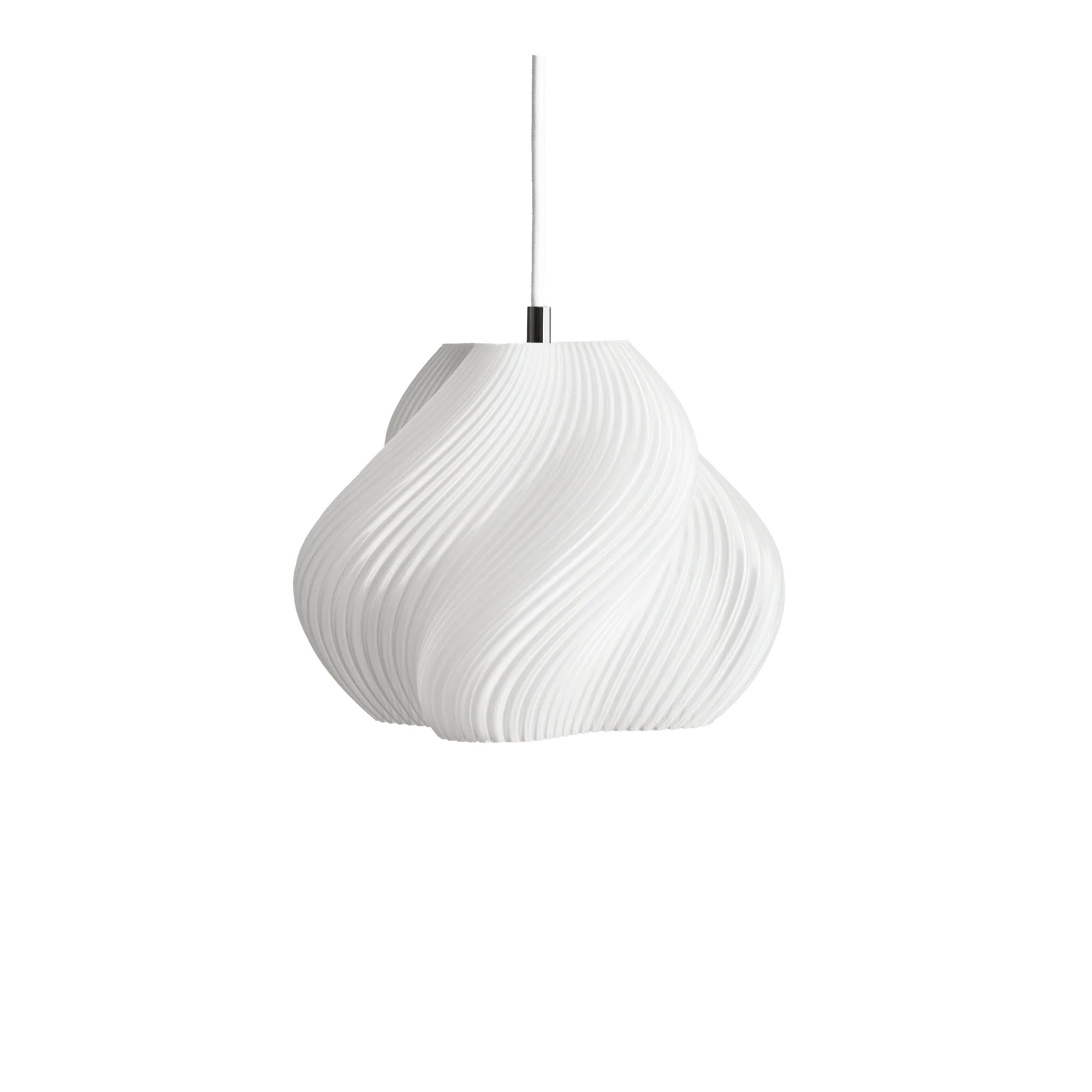 Soft Serve Pendant 01 från Cremé Atelier tillhör en modern och elegant monokrom kollektion, inspirerad av de livliga sorbetfärgerna och de kalla godsakerna som serveras i gelateriorna längs de solbelysta gatorna i Palma de Mallorca. Denna pendellampa utmärker sig med sina mjuka, volymösa former som för tankarna till luftiga glassmoln, vilket bidrar till en drömlik atmosfär i vilket rum den än placeras. Varje lampa kan hängas enskilt eller arrangeras i kluster för att direkt förhöja stämningen i rummet. Hållbart producerad och paketerad i Stockholm, tillverkas varje lampa på beställning med en produktionstid på tre timmar. På grund av 3D-skrivartekniken kan små variationer i textur och färg uppstå, vilket gör varje exemplar unikt.