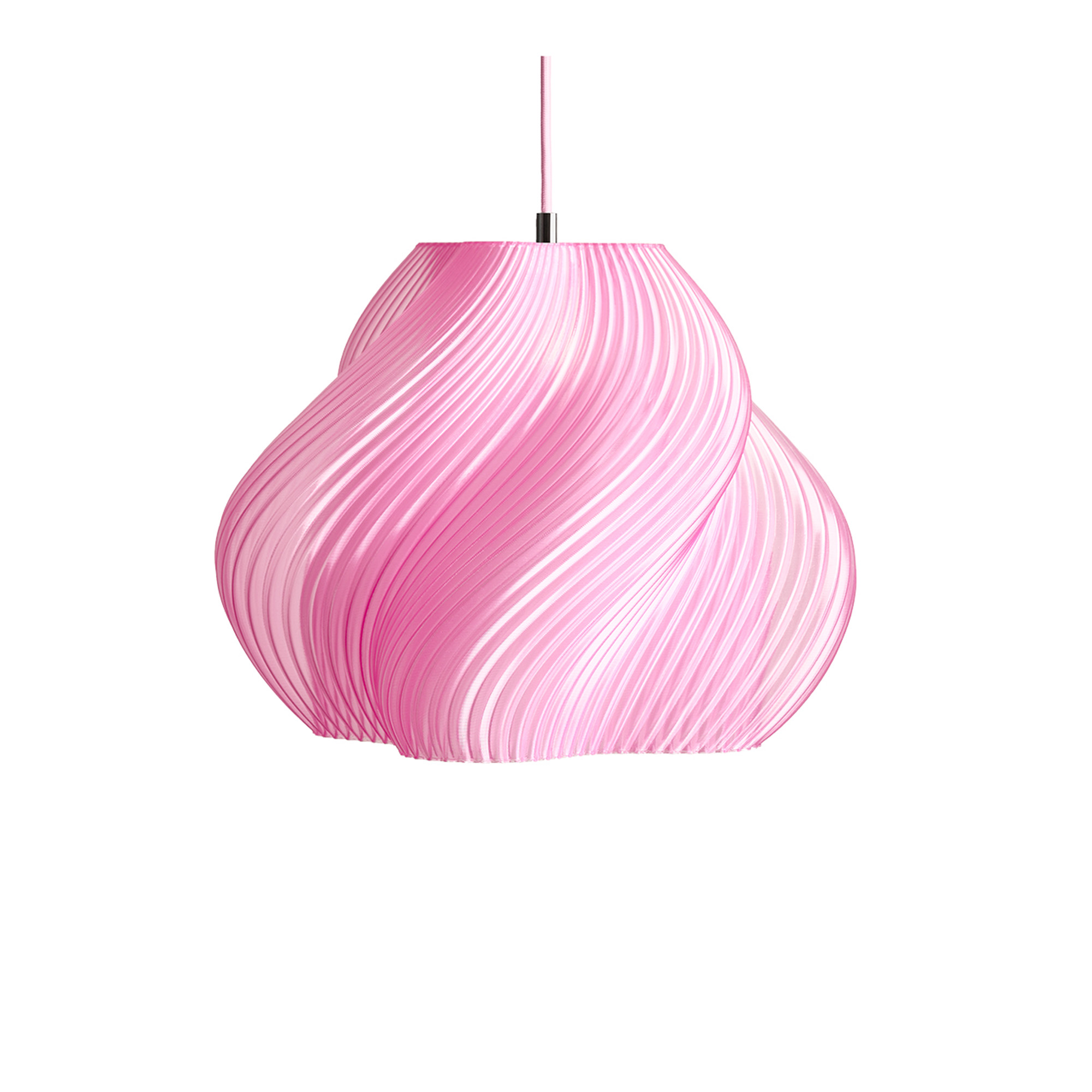 Soft Serve Pendant 03 är ett designverk av Crème Atelier. Denna taklampa har hämtat sin estetiska inspiration från den fluffiga konsistensen hos mjukglass och bidrar till en nordisk designkänsla i vilket rum som helst med sitt samtida och strukturriga designuttryck. Den är idealisk för att hängas upp som en solitär belysningskälla eller i en imponerande grupp för att skapa en storslagen effekt. Varje exemplar av denna lampa är unikt och framställs exklusivt på beställning, med en produktionstid på 13 timmar. Tillverkad med 3D-printingsteknik i biologiskt nedbrytbar plast, är det möjligt att varje lampas yta och färgton kan variera, vilket gör varje exemplar distinkt och unikt.