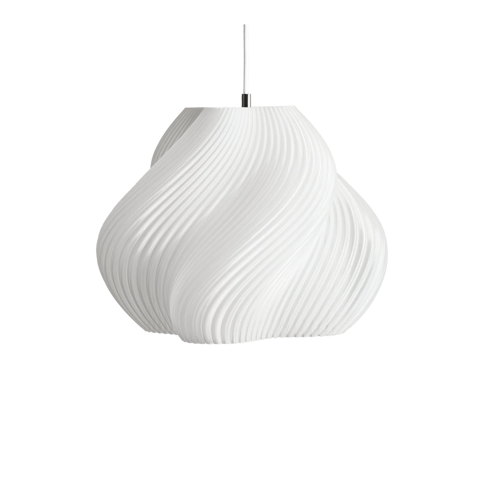 Soft Serve Pendant 03 är ett designverk av Crème Atelier. Denna taklampa har hämtat sin estetiska inspiration från den fluffiga konsistensen hos mjukglass och bidrar till en nordisk designkänsla i vilket rum som helst med sitt samtida och strukturriga designuttryck. Den är idealisk för att hängas upp som en solitär belysningskälla eller i en imponerande grupp för att skapa en storslagen effekt. Varje exemplar av denna lampa är unikt och framställs exklusivt på beställning, med en produktionstid på 13 timmar. Tillverkad med 3D-printingsteknik i biologiskt nedbrytbar plast, är det möjligt att varje lampas yta och färgton kan variera, vilket gör varje exemplar distinkt och unikt.