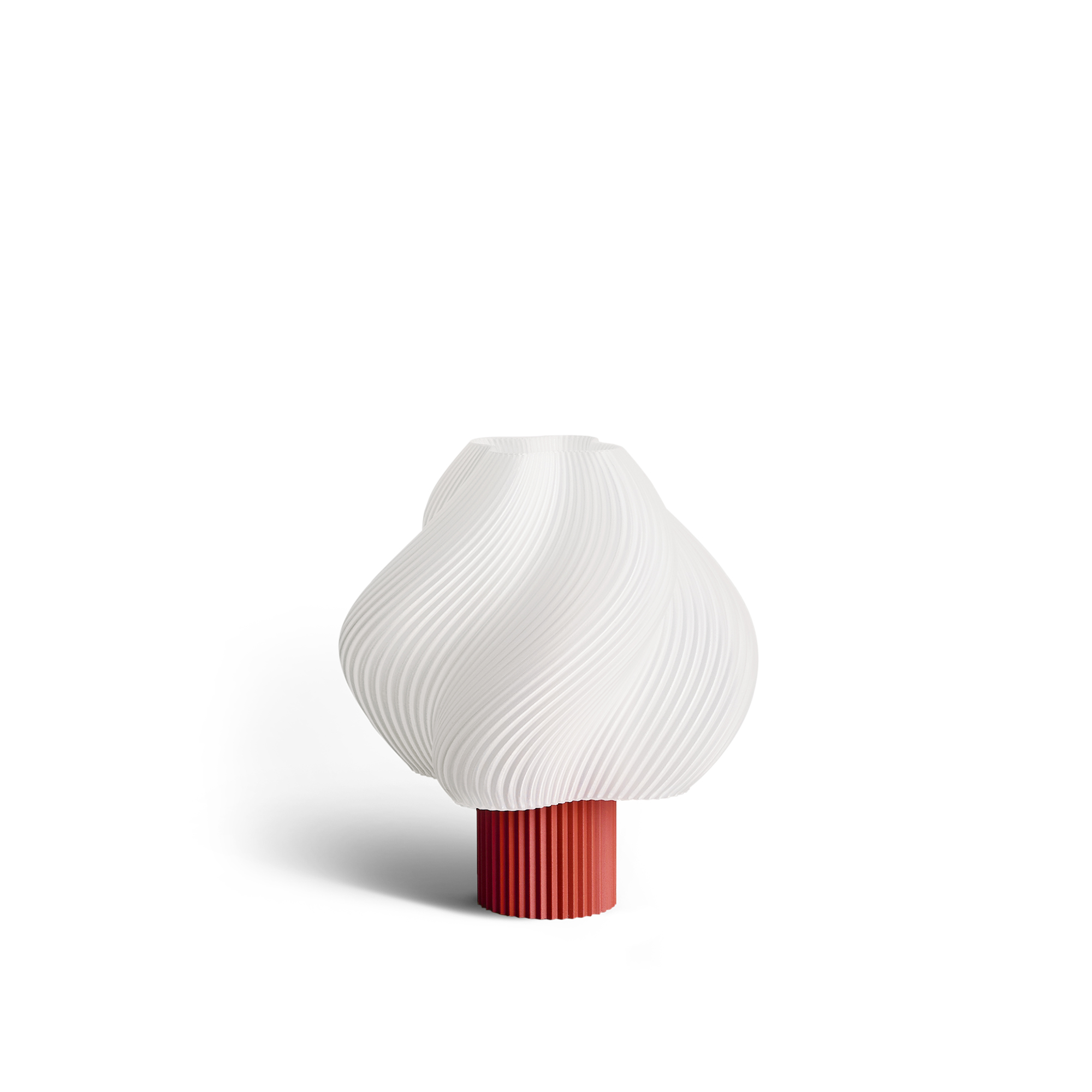 Soft Serve Portable från Cremé Atelier är en batteridriven och något mindre version av den populära Soft Serve Lamp. Denna portabla lampa levereras med en vit tygklädd magnetisk USB-kabel, vilket ger dig friheten att ta den med dig överallt. Dess kompakta storlek gör den perfekt för att placera i trånga utrymmen där det inte finns något eluttag. Den är lämplig för både inomhus- och utomhusbruk och har en tredelad dimmerfunktion för att justera ljusstyrkan efter ditt humör. Inspirerad av den nostalgiska och luftiga känslan av soft serve lamp, lägger denna minimalistiska lampa till en unik touch till dina interiörer med sin skandinaviska estetik, rika textur och tidlösa elegans. Den finns i flera lugnande färger, från Peach Sorbet till Bluberry Sorbet – du kan välja bland tio lockande smaker för att lysa upp ditt hem. Varje lampa är tillverkad på ett hållbart sätt och förpackad i Stockholm, skräddarsydd på beställning med en utskriftstid på 6 timmar. Variationer i textur och färg kan förekomma på grund av 3D-utskriftsprocessen, vilket gör varje lampa unik. Den har vunnit flera prestigefyllda designpriser, inklusive German Design Award 2024 och Scandinavian Design Awards 2023.