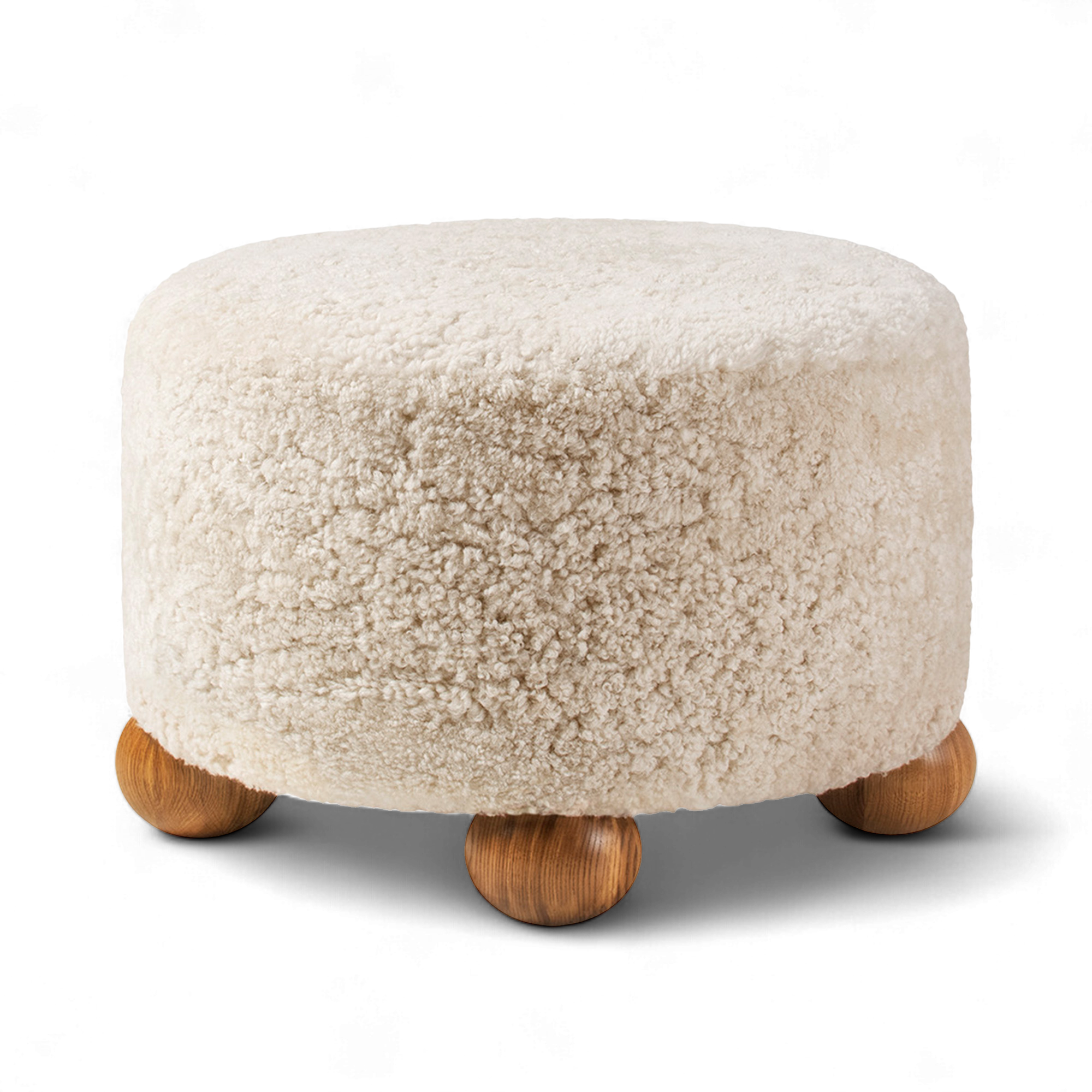Dagmar - Luupo Ottoman Sheepskin Moonlight Oiled Oak H 40 cm - Fotpallar - Träfärgad - Trä/Textilmaterial