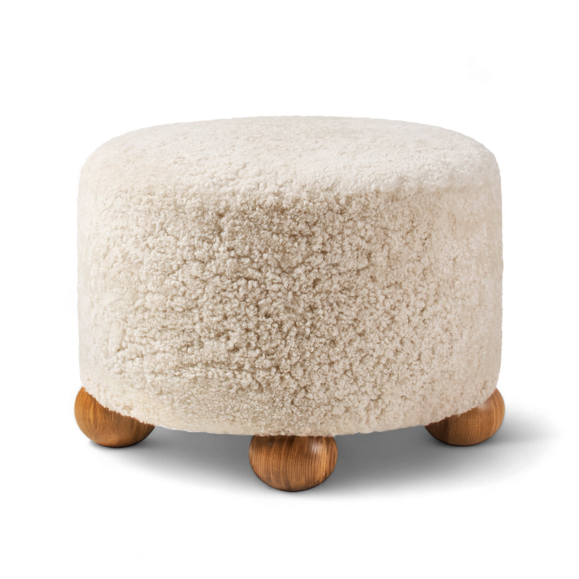 Dagmar - Luupo Ottoman Sheepskin Moonlight Oiled Oak H 45 cm - Fotpallar - Träfärgad - Trä/Textilmaterial
