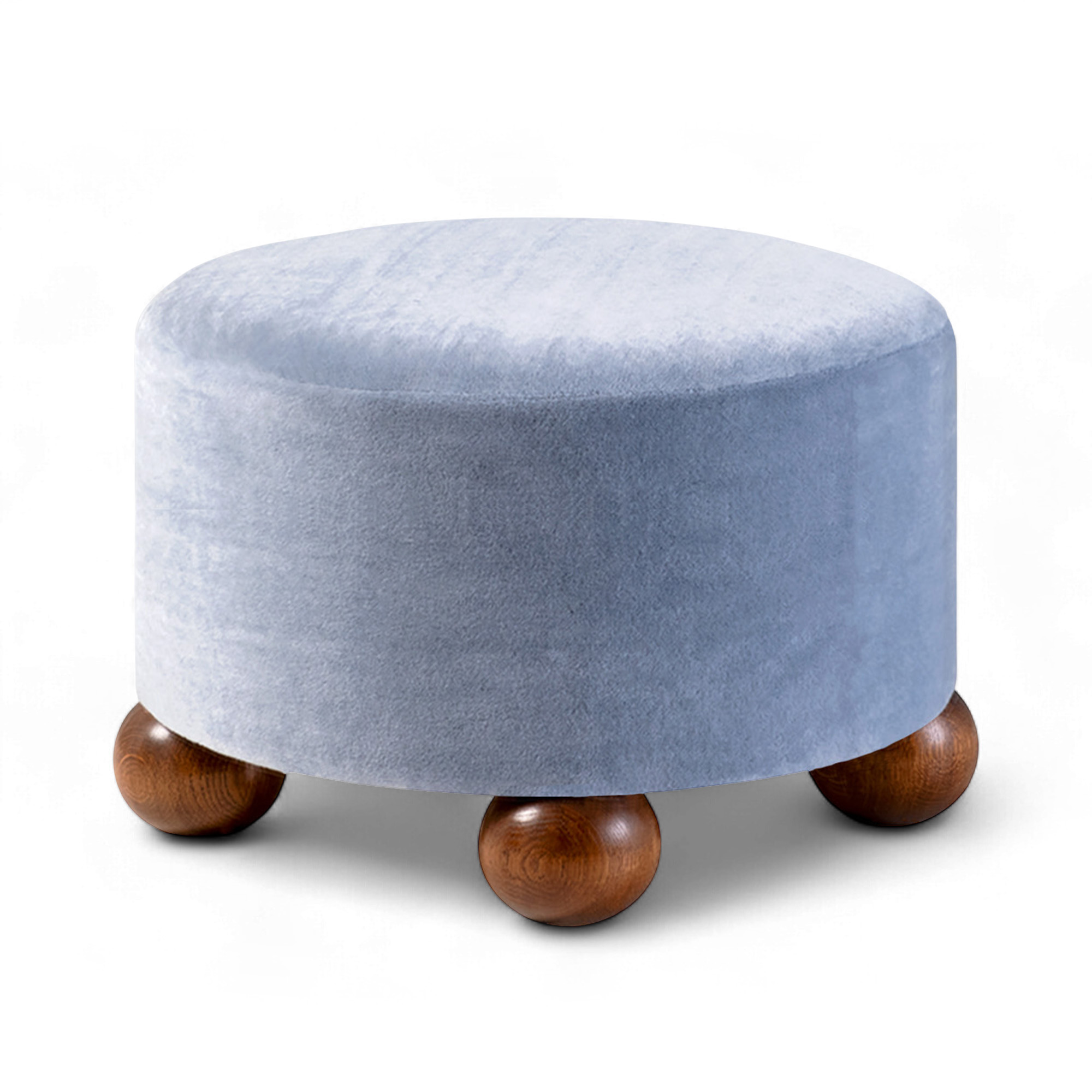 Dagmar - Luupo Ottoman Teddy Mohair Ciel Fumed Oak H 40 cm - Fotpallar - Träfärgad - Trä/Textilmaterial