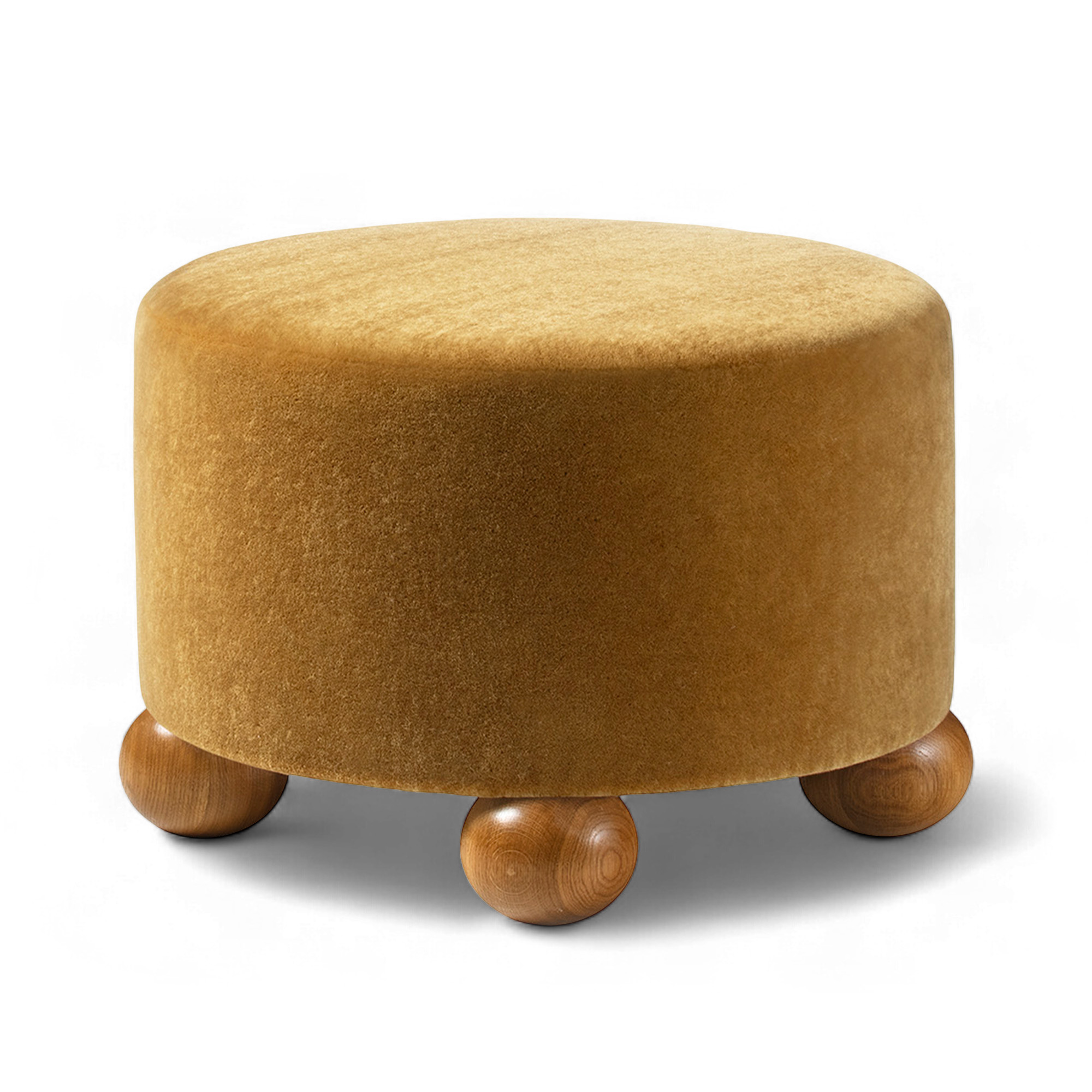 Dagmar - Luupo Ottoman Teddy Mohair Moutarde Oiled Oak H 40 cm - Fotpallar - Träfärgad - Trä/Textilmaterial
