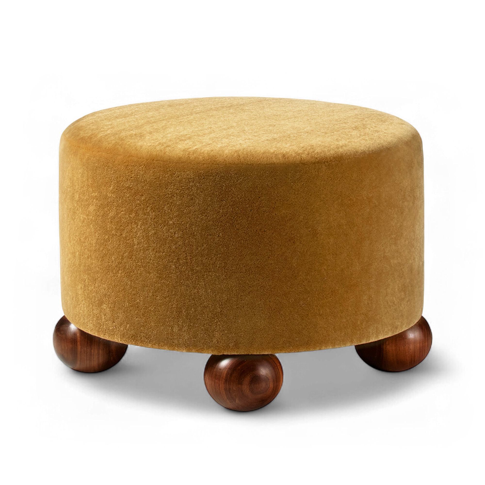 Dagmar - Luupo Ottoman Teddy Mohair Moutarde Walnut H 40 cm - Fotpallar - Träfärgad - Trä/Textilmaterial
