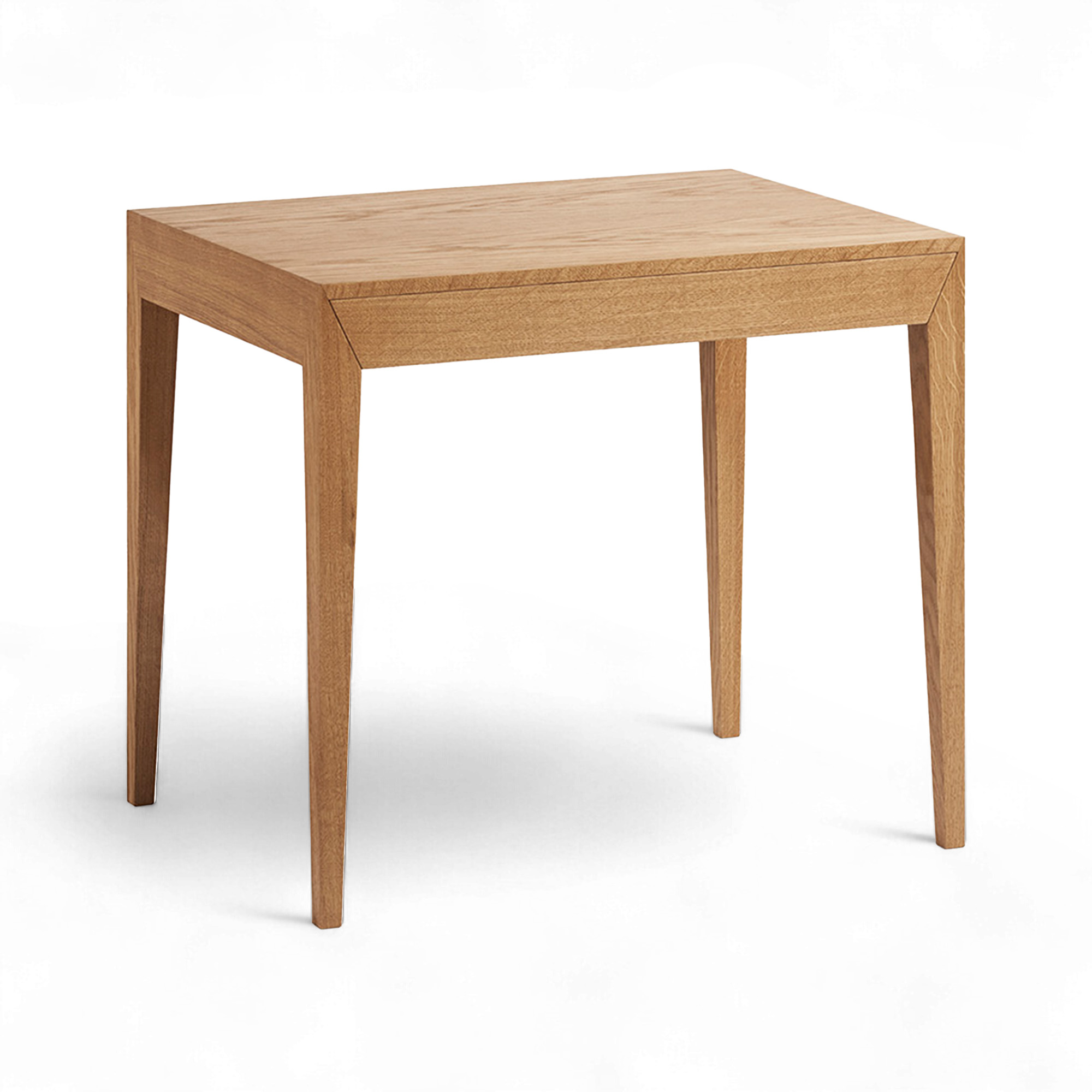 Margrethe/Model 35 Bedside Table från Dagmar, designad av Severin Hansen, är ett sängbord som utmärks av ett precist och raffinerat hantverk. Bordets formspråk präglas av Hansens karakteristiska trefogade hörn och elegant avsmalnande ben – detaljer som vittnar om en gedigen dansk designtradition. Tillverkat i massiv ek eller valnöt med oljad yta, erbjuder bordet både naturlig värme och lång hållbarhet. Nattduksbordet kan fås med eller utan hylla i rotting alternativt trä, vilket ger flexibilitet i uttryck och funktion. Denna modell kommer utan hylla. Tack vare sina kompakta mått passar det lika väl som sängbord i sovrummet som sidobord i vardagsrummet. Bordet ingår i serien Margrethe.