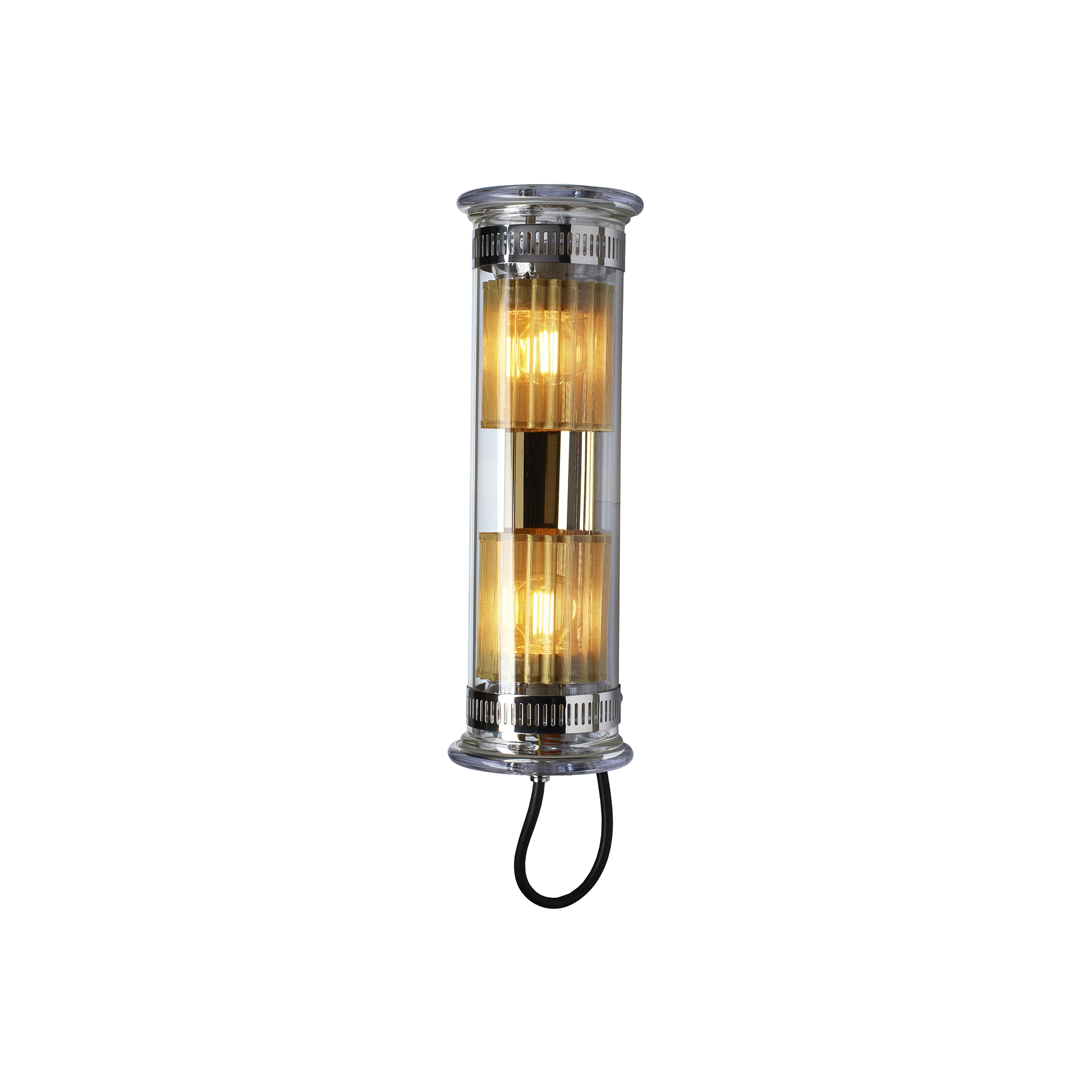 In The Tube 100-350 är en mångsidig lampa från DCWéditions, formgiven av Dominique Perrault och Gaëlle Lauriot-Prévost. Precis som namnet antyder är armaturen formad som ett rör med ljuskällorna vilandes inuti. In The Tube är tillverkad av borosilikatglas och har vattenresistenta ändar i svart kisel och gjuten aluminium, där kanterna även är justerbara. Runt varje ljuskälla sitter ett tunt metallnät som stämningsfullt släpper igenom ljuset på In The Tube. Välj mellan mässing eller silver på metallnäten och kombinera med olika färger på reflektorn som är placerad i mitten av glasröret. Reflektorn skapar ett intressant element till helheten och bestämmer även färg på ljuset som avges – finns i färgerna silver eller guld.