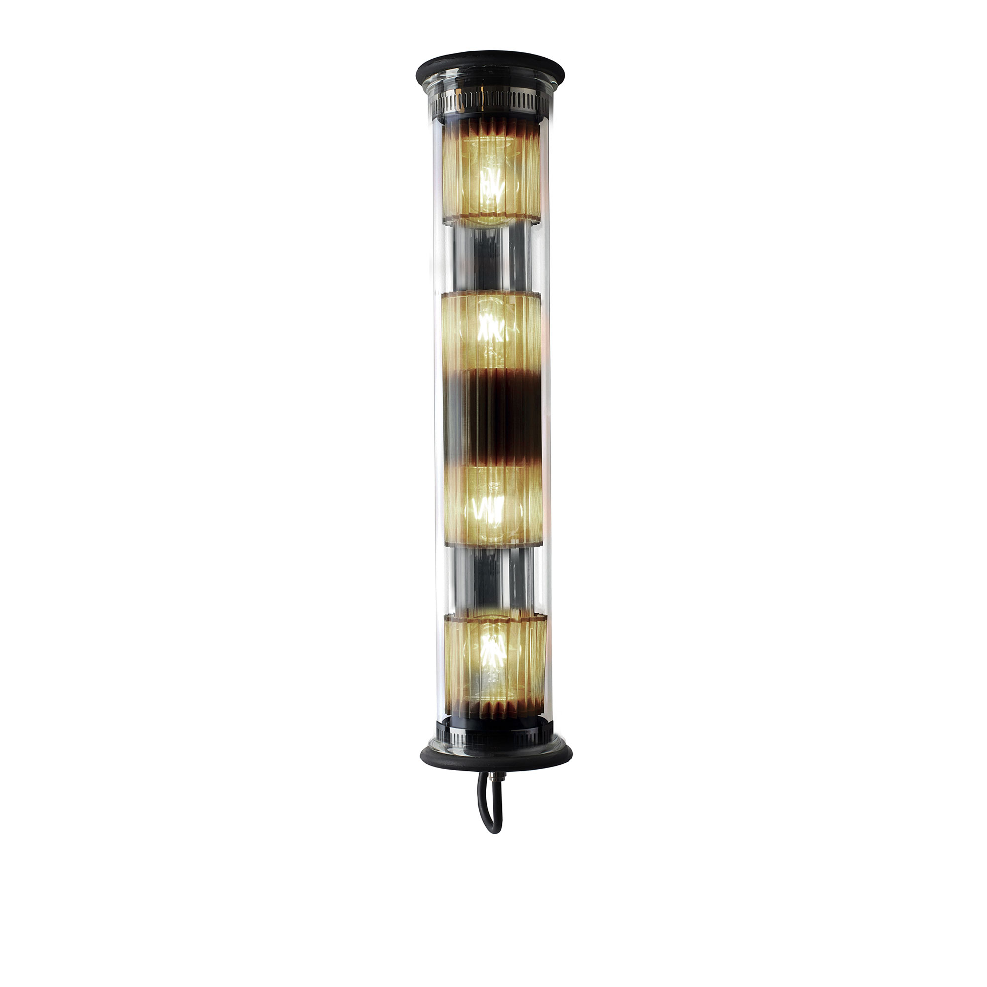 In the Tube är en lampa från DCWéditions som, precis som namnet föreslår, innehåller ljuselement inuti ett cylindriskt glas. Detta glasrör är framställt av borosilikatmaterial och avslutas med svarta silikonändar samt gjuten aluminium, vilket bidrar till dess fuktmotståndighet och gör den lämplig för utomhusbruk eller i våtutrymmen. Inuti glasröret finns det fyra nät som kan anpassas efter önskemål, tillgängliga i guld- eller silverfinish. När lampan är tänd, skapar dess reflektor en distinkt estetik. Armaturen är utrustad med justerbara kanter av rostfritt stål, vilket möjliggör placering på ett bord eller montering på en vägg. Det finns även alternativa monteringsdetaljer som tillåter upphängning i olika vinklar, inklusive vertikalt, horisontellt eller diagonalt, för de som föredrar det. Designen av denna lampa är resultatet av ett samarbete mellan arkitekten Dominique Perrault och designern Gaëlle Lauriot-Prévost. Det är en mångsidig lampa som passar utmärkt i olika rum såsom vardagsrum, hall eller sovrum. Dess fukttålighet gör den även till en attraktiv inredningsdetalj i badrum. Lampan erbjuds i olika dimensioner som kan kombineras för att skapa spännande grupperingar och en iögonfallande ljuskomposition. Ljuskällor medföljer inte.