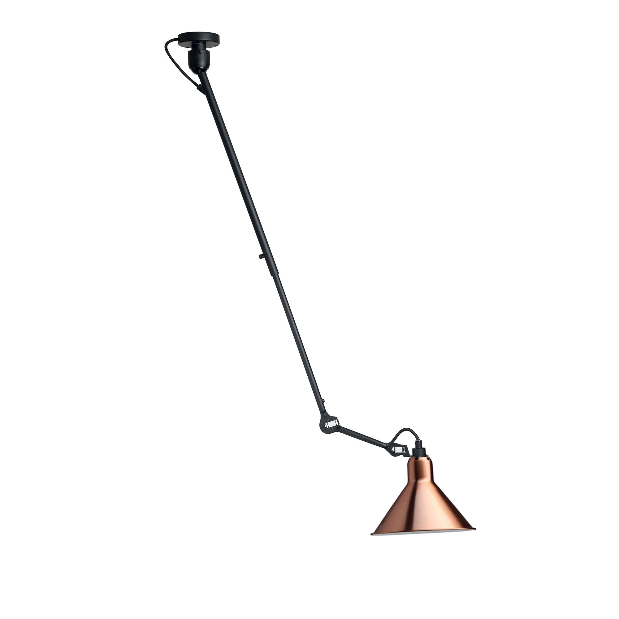 Modell 302, en taklampa i stål med Lampa Gras karaktäristiska utseende och funktion men med en egen karaktär. 302 är justerbar i längden och ger både ett perfekt arbetsljus och en fin atmosfär. Designad av Bernard-Albin Gras.