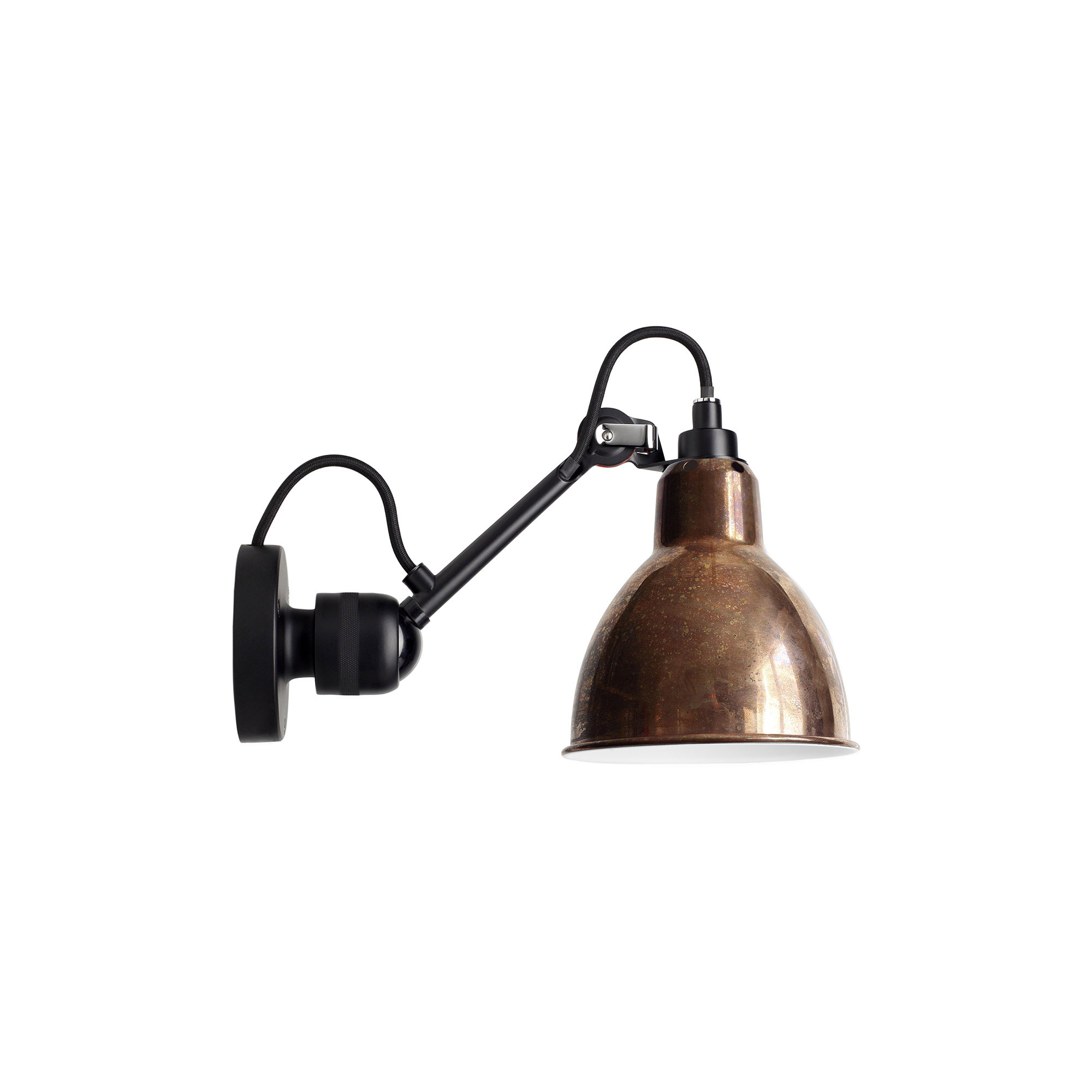 Redan 1921 designades vägglampan Lampe Gras No304 av Bernard-Albin Gras, och den utgör en del av den omfattande lampkollektion som tillverkas av DCWéditions i Paris. Dessa lampor finns tillgängliga i ett brett spektrum av stilar och finishar. Modellen som monteras på väggen är utformad utan extern kabel och strömbrytare. Väggfästet och armen är framställda i lackerat stål med en mattsvart yta. Den ikoniska runda lampskärmen erbjuds i flera olika materialval såsom aluminium, koppar eller frostat glas. Den rena och estetiskt tilltalande designen, fri från strömbrytare och kabel, gör att lampan passar utmärkt för montering på väggar i högre positioner, såsom i en korridor eller för att belysa konstverk eller andra inredningsdetaljer. För de som föredrar No304 med en strömbrytare monterad på väggfästet eller med en textilkabel, finns alternativen Lampe Gras No304 SW respektive Lampe Gras No304 CA. Det är viktigt att notera att koppar är ett levande material och att modellen i obehandlad koppar levereras utan ytterligare finish. Eftersom den är obehandlad kommer en patina att utvecklas med tiden, vilket varierar beroende på var lampan placeras. Med tiden kommer den obehandlade kopparen att få en mer enhetlig och jämn patinering.