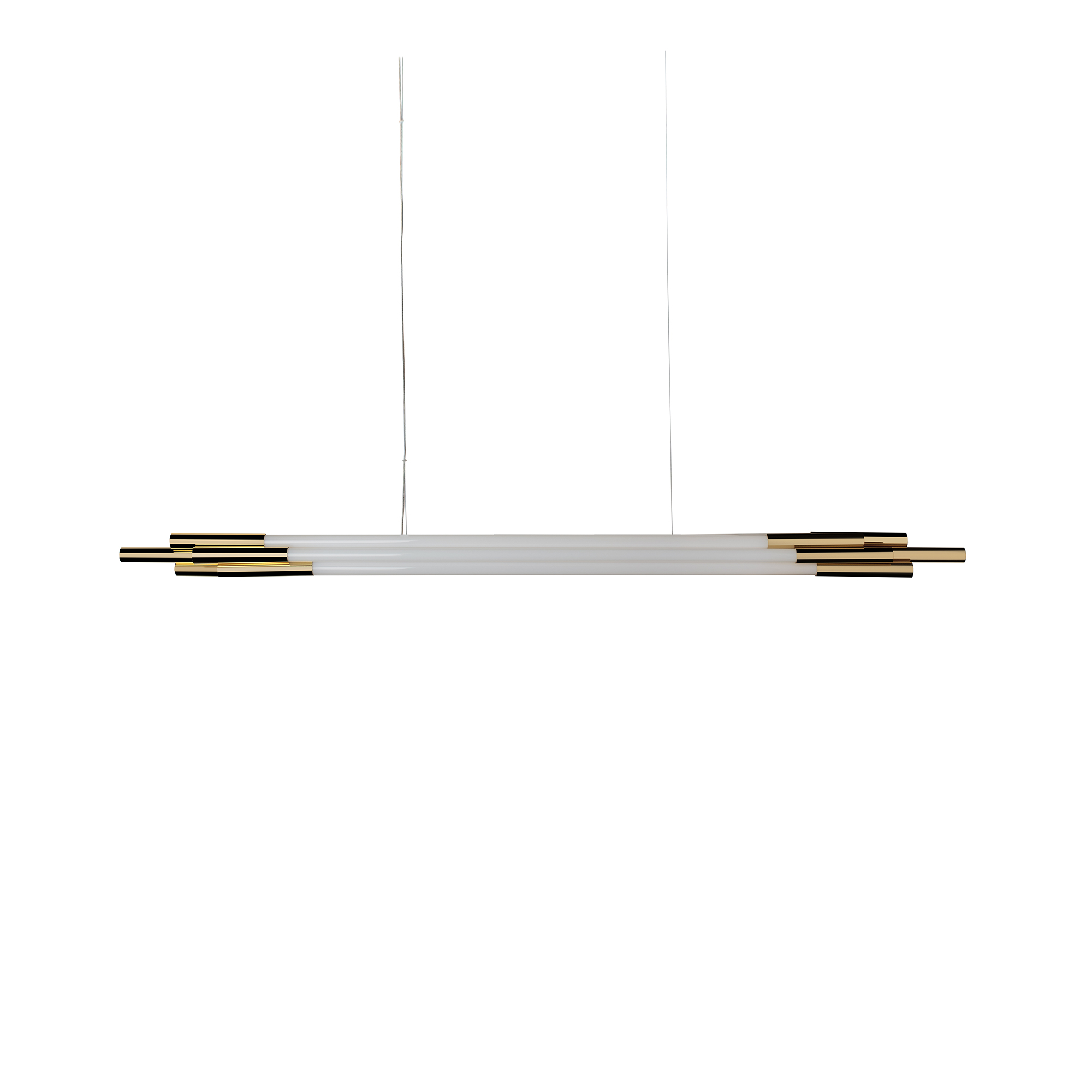 Org Horizontal Pendant är en sofistikerad pendel formgiven av tyska Sebastian Summa för DCWéditions. När Sebastian formgav armaturen inspirerades han av science fiction och astronomi vilket ledde till den högst intressanta pendeln Org, som för tankarna till ett vackert stjärnfall. Org består av flera glasrör som klustrats ihop till en enhet som elegant kapslats in av anodiserat aluminium i båda ändarna. Pendeln har en integrerad LED belysning som sprider ett mjukt och behagligt ljus till sin omgivning. Kombinationen av de klassika materialen och den moderna formgivningen gör Org till en iögonfallande armatur. I Org-serien finner du förutom taklampan, även en pendel, samt en vägglampa.