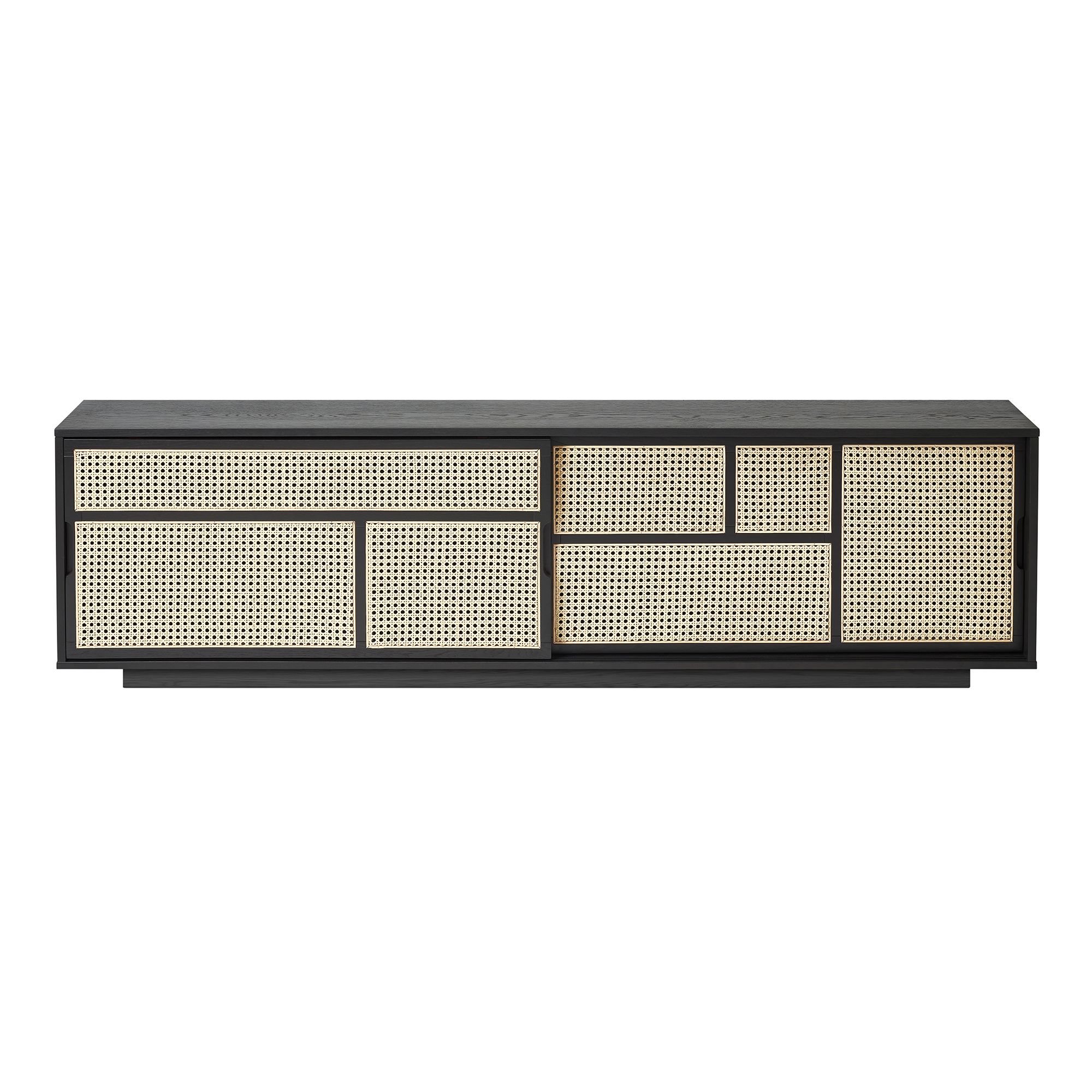 Air Sideboard Low är en förvaringsmöbel som kombinerar ett grafiskt mönster av ribbor med rottingväv. Rottingen ger Air en känsla av lätthet och transparens till skillnad från andra sideboards som ofta är tyngre och svårare att placera i rummet. Air är formgiven av Mathieu Gustafsson för Design House Stockholm och fungerar som lika bra som rumsavdelare som ståendes mot en vägg.