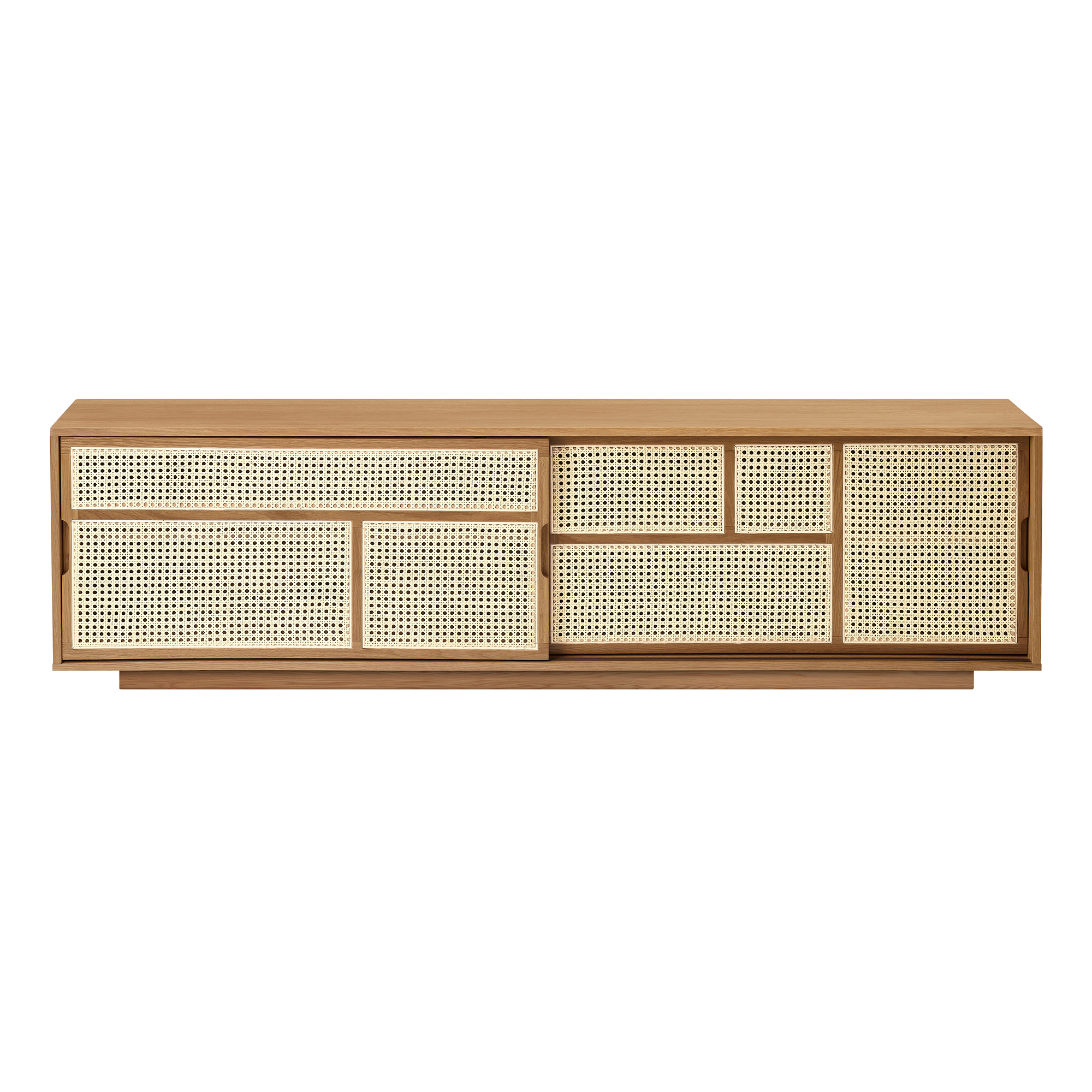 Air Sideboard Low är en förvaringsmöbel som kombinerar ett grafiskt mönster av ribbor med rottingväv. Rottingen ger Air en känsla av lätthet och transparens till skillnad från andra sideboards som ofta är tyngre och svårare att placera i rummet. Air är formgiven av Mathieu Gustafsson för Design House Stockholm och fungerar som lika bra som rumsavdelare som ståendes mot en vägg.