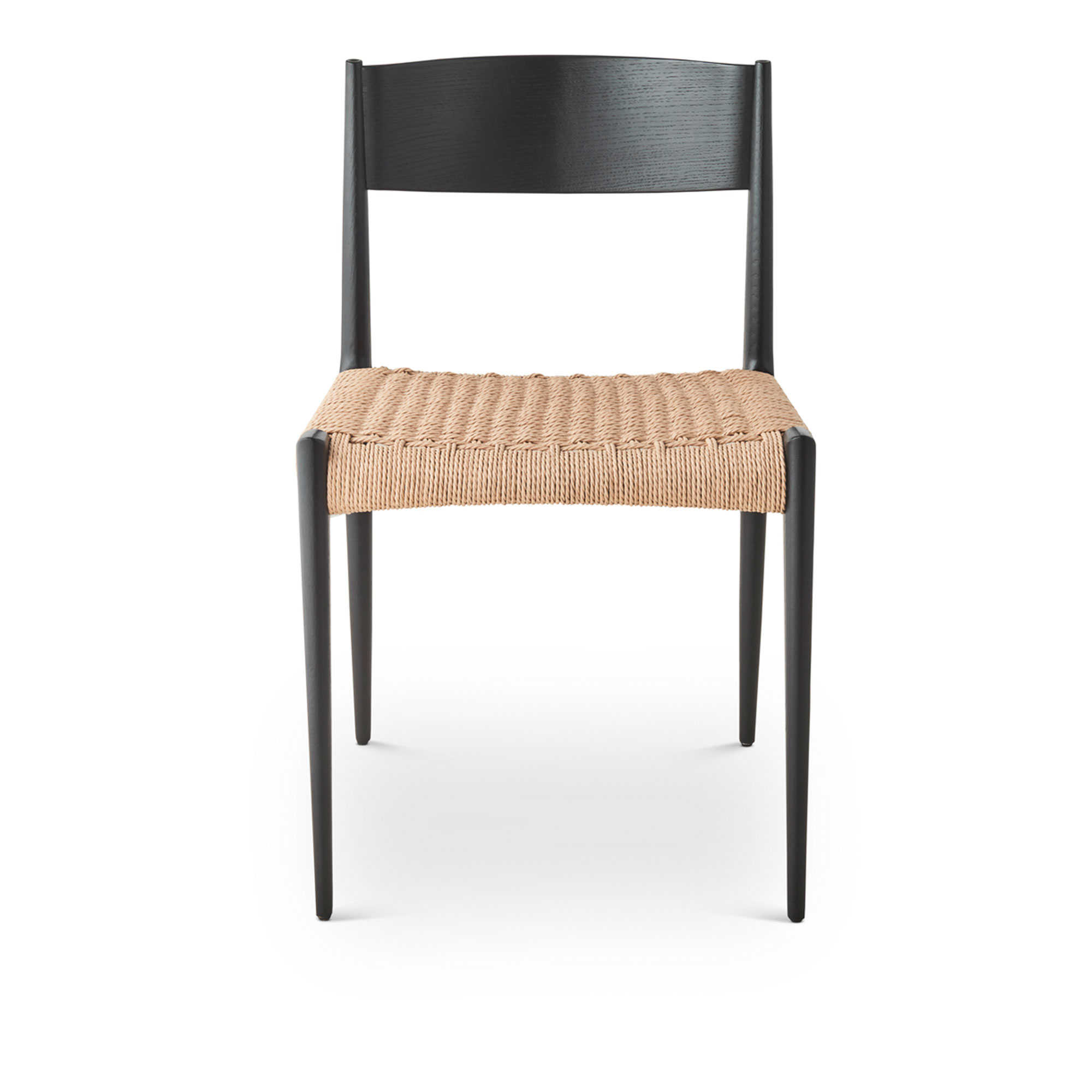 Med sina massiva träben erbjuder stolen en elegant och luftig visuell framtoning. Sitsen är handvävd av papperssnöre medan ryggstödet är gjutet för att säkerställa optimal sittkomfort.