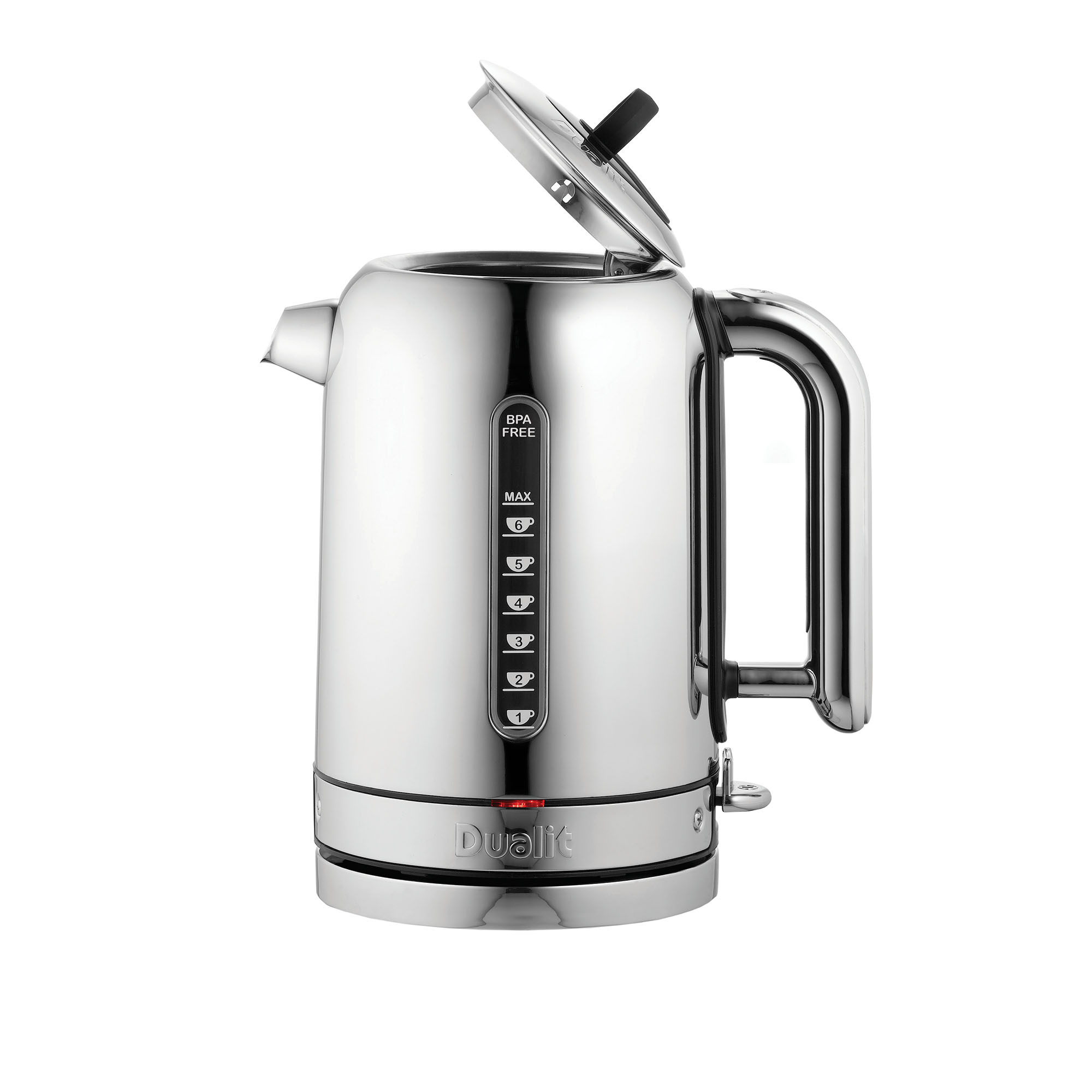 Vattenkokare classic 1,7 L från Dualit. Classic-vattenkokaren från Dualit är det brittiska köksföretagets bästsäljande vattenkokare i ett klassiskt kromat utförande som passar in i moderna kök i alla dess former. Den multi-patenterade vattenkokaren är försedd med en mängd funktioner som gör kokandet av stora volymer vatten enklare än vad det någonsin har varit, med en både snabb och tystgående kokfunktion som förser dig med kokat vatten på nolltid. Med sina två fönster med både volym- och koppindikatorer värmer du enkelt upp precis den mängd vatten du behöver vare sig om det är för servering av te eller snabbkokning av pastavatten. Classic Kettle är också byggd för att hålla, och har helt byggs upp med utbytbara delar för att drastiskt kunna utöka livslängden på vattenkokaren med oändliga reparationsmöjligheter. En högkvalitativ vattenkokare som är gjord för att hålla länge helt enkelt. Vattenkokaren har en volym på 1,7 L.