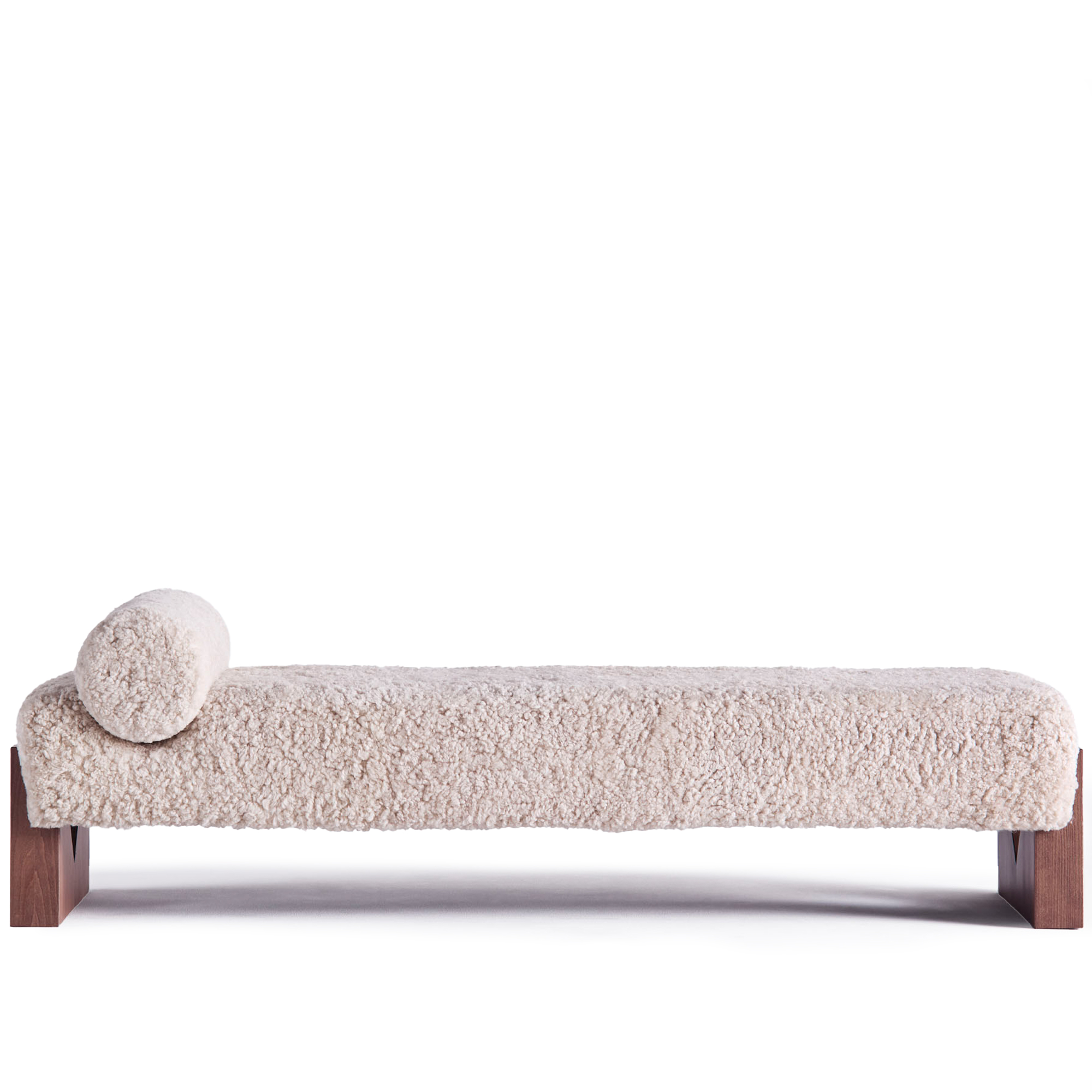 Dusty Deco - V Daybed betsad bok fårskinn moonlight - Dagbäddar - Beige - Trä/Textilmaterial