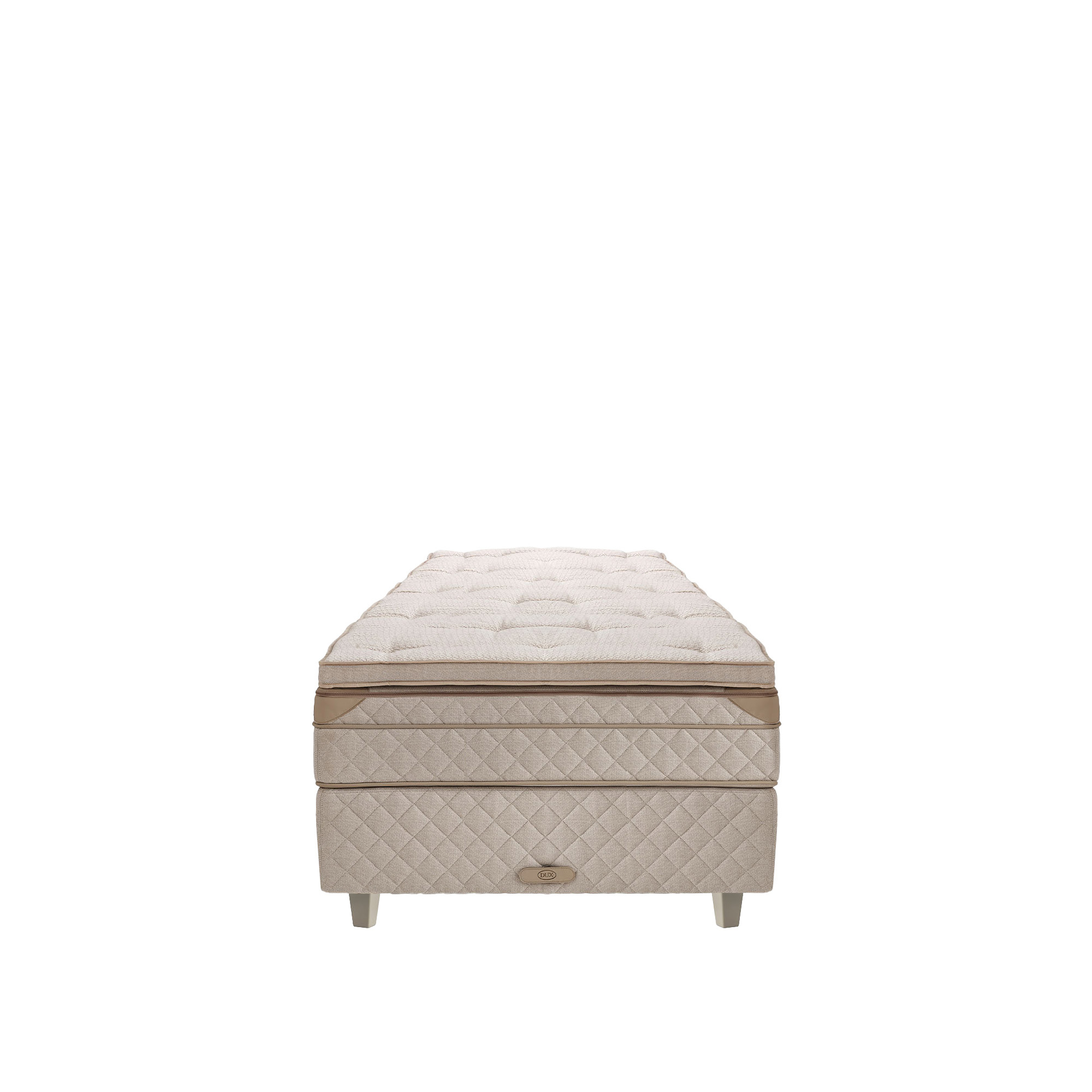 Englesson - Superior Kontinental Low Frame Firm 180Wx200L Pearl Dubbelsäng, Sängben Koniska Trä White 21 cm, Bäddmadrass Sense Plus - Sängar - Beige
