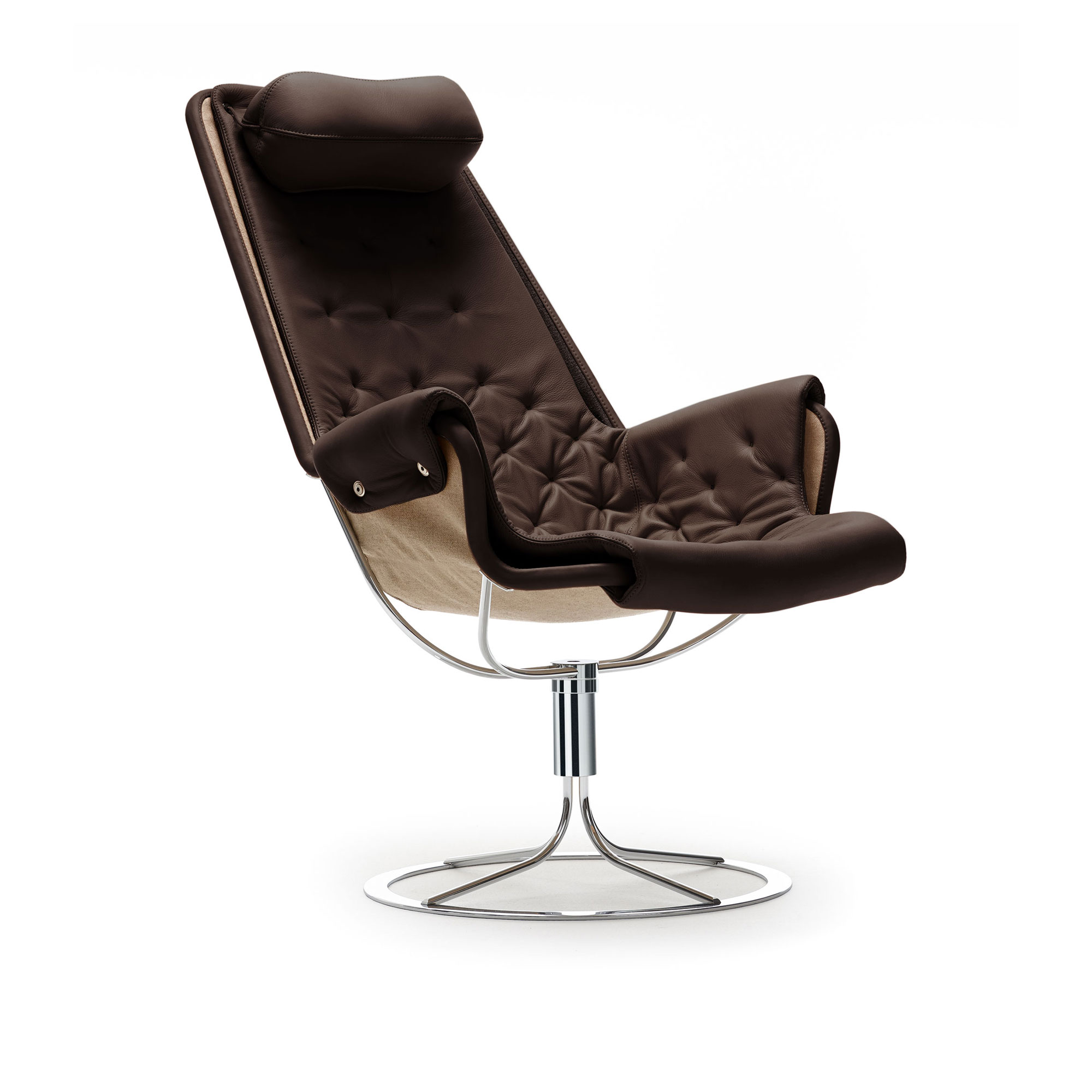 DUX - Jetson Fåtölj, Bärande Väv Flax 21, Läder Dakota 29 Mörkbrun - Fåtöljer - Bruno Mathsson - Brun - Läder/Naturmaterial/Metall/Syntetiskt