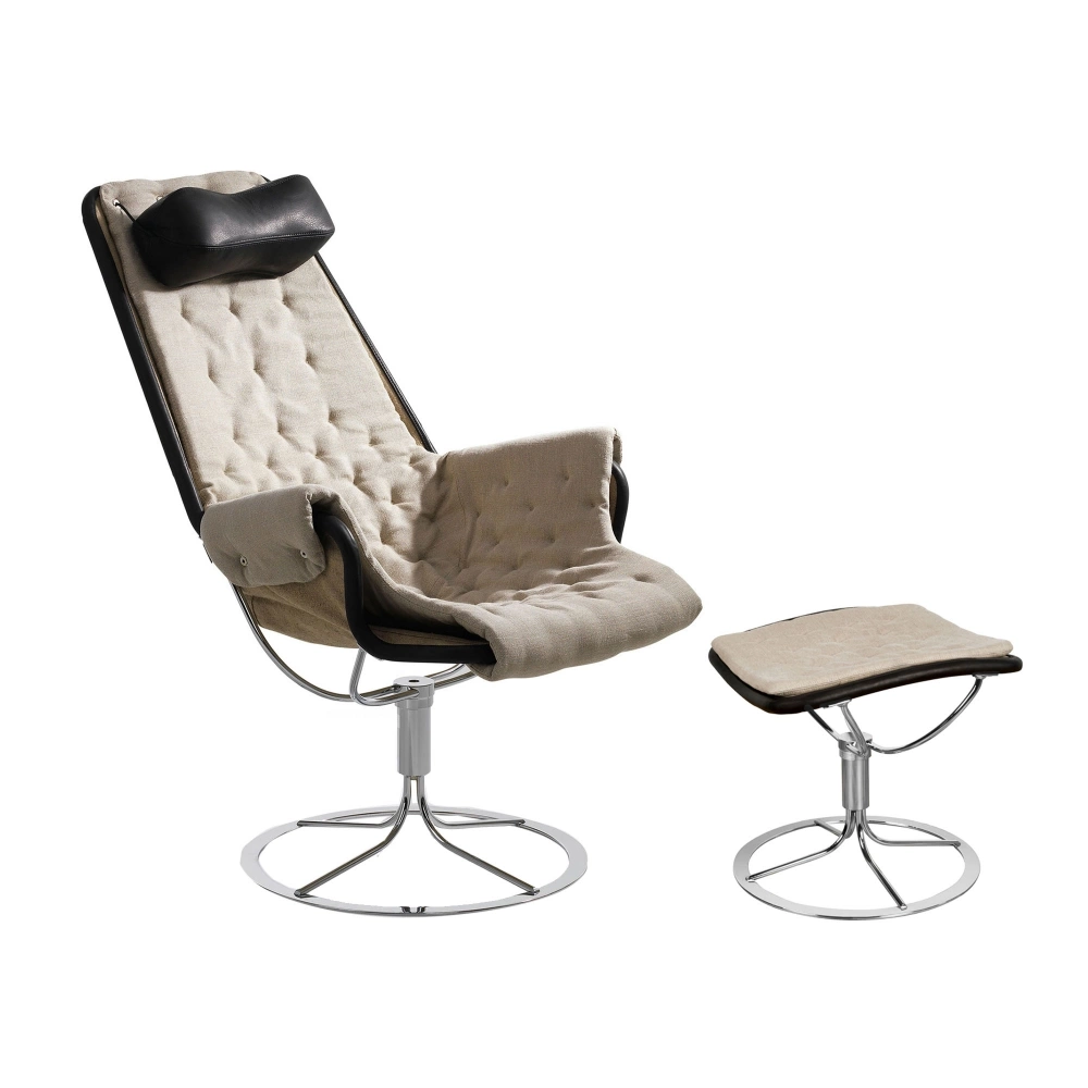 Till Jetson Match hör också Jetson 69 Fotpall, designad av Bruno Mathsson. Denna fotpall är tillverkad med samma högkvalitativa material som fåtöljen, med en ram av stålrör klädd i Flax 21-linne och svart Dakota-läder. Mathsson, som ofta anses vara en av Sveriges främsta möbeldesigners under 1900-talet, är känd för sitt fokus på sittkomfort. Hans designfilosofi var att möbler ska vara både enkla och bekväma, vilket tydligt återspeglas i både Jetson Match-fåtöljen och Jetson 69 Fotpallen.