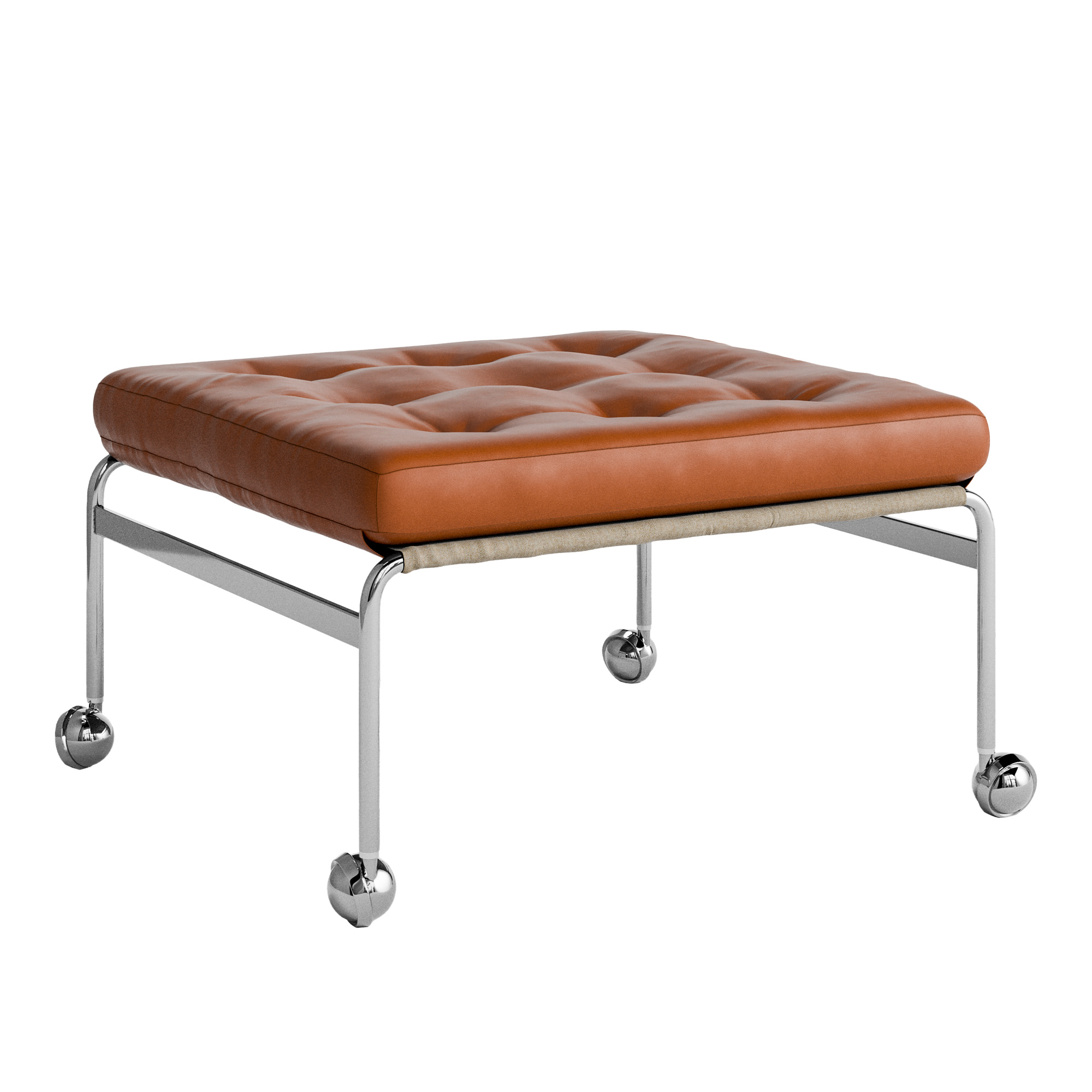 Bruno Mathsson International - Jetson 69 Fotpall (Till DUX Jetson) Dyna i Flax 21 / Skoning i Dakota Cognac 24 - Fotpallar - Bruno Mathsson - Brun - Läder/Metall/Textilmaterial/Syntetiskt