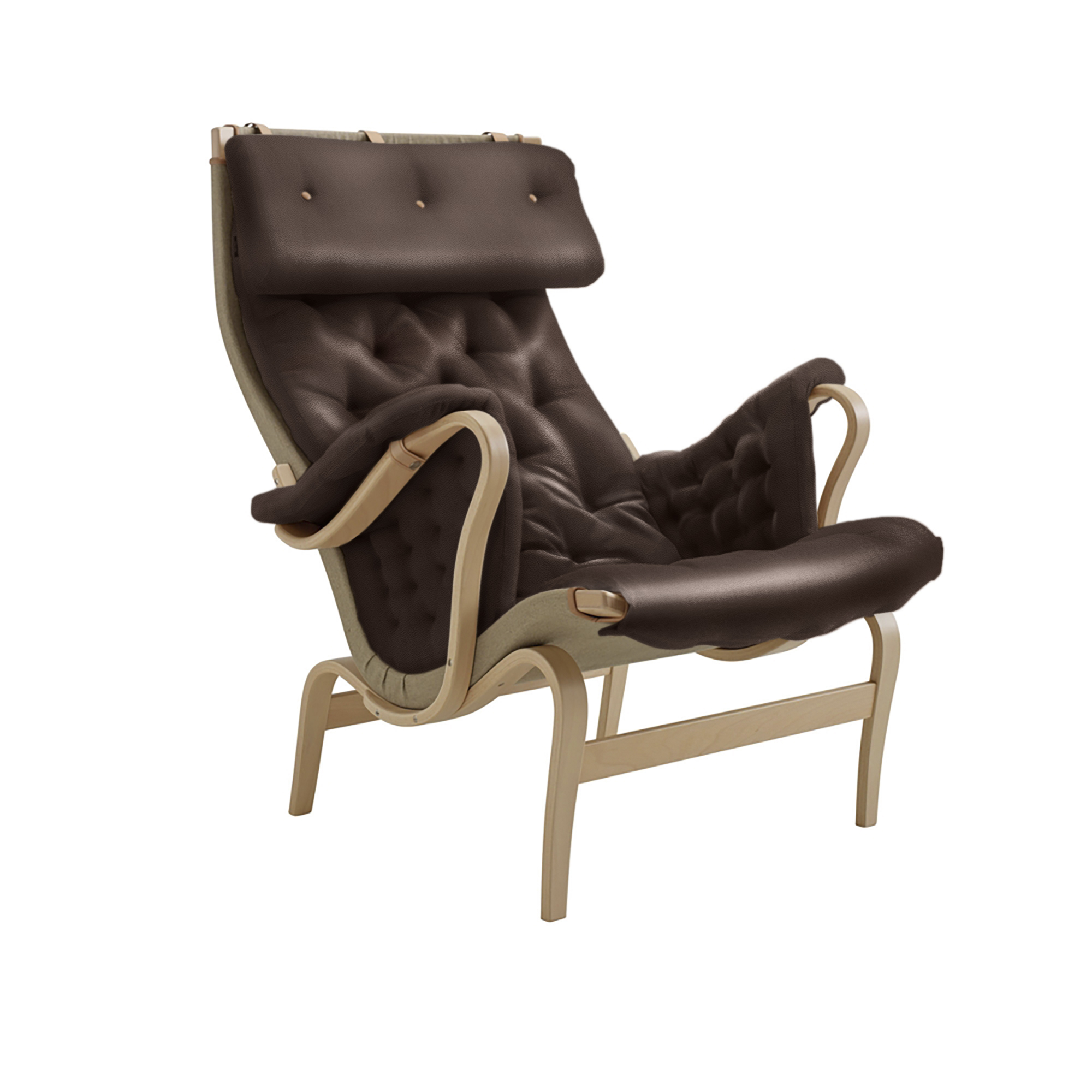 DUX - Pernilla 69 Fåtölj, Bärande Väv Flax 21, Prisgrupp Dakota 29 Mörkbrun - Fåtöljer - Bruno Mathsson - Brun - Läder/Trä/Skum